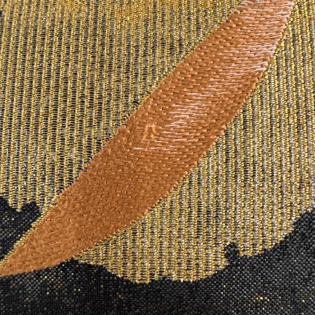 開き名古屋帯 秀品 松笠 松葉 箔 金糸 黄土色 正絹