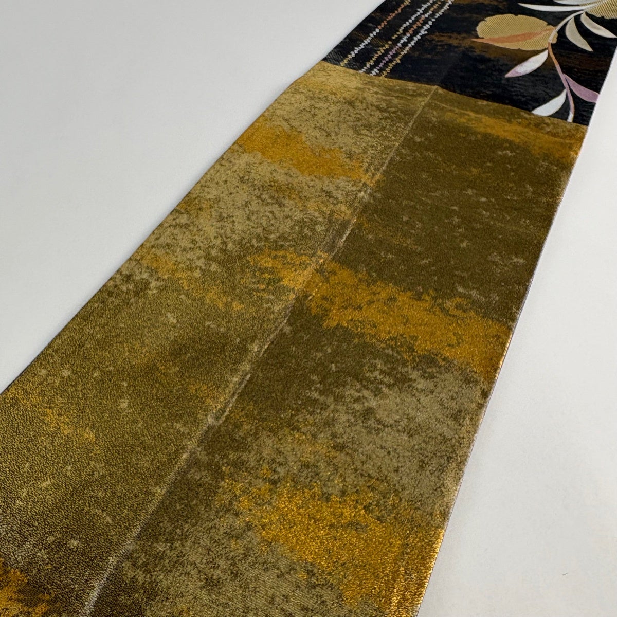 名古屋帯 優品 落款あり 花唐草 箔 金糸 金茶 正絹