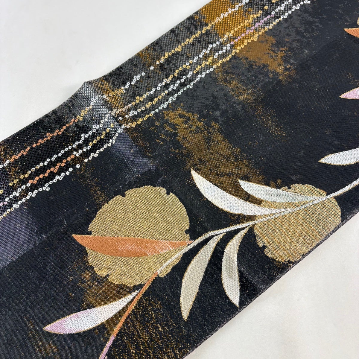 名古屋帯 秀品 枝花 雲文 金彩 金色 正絹