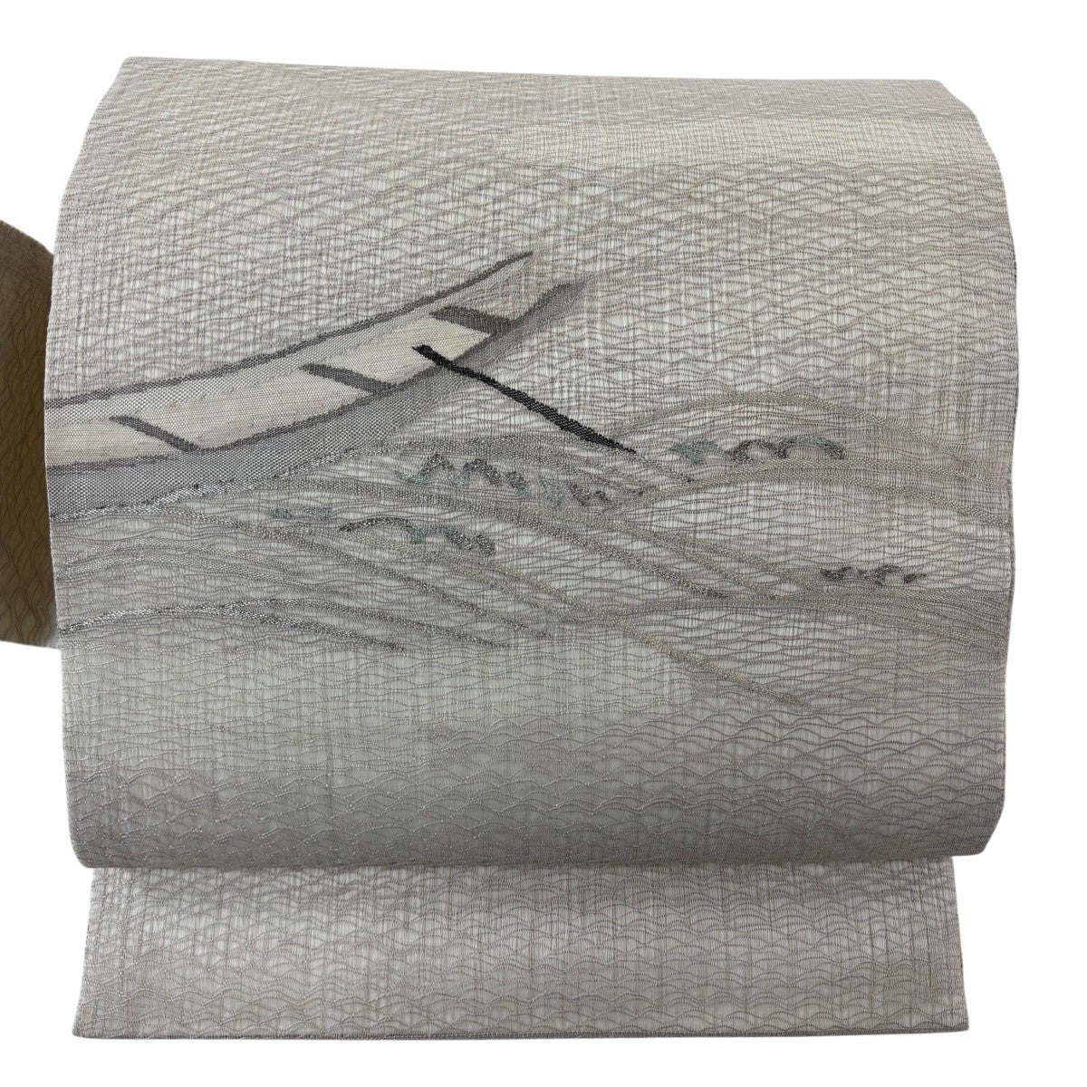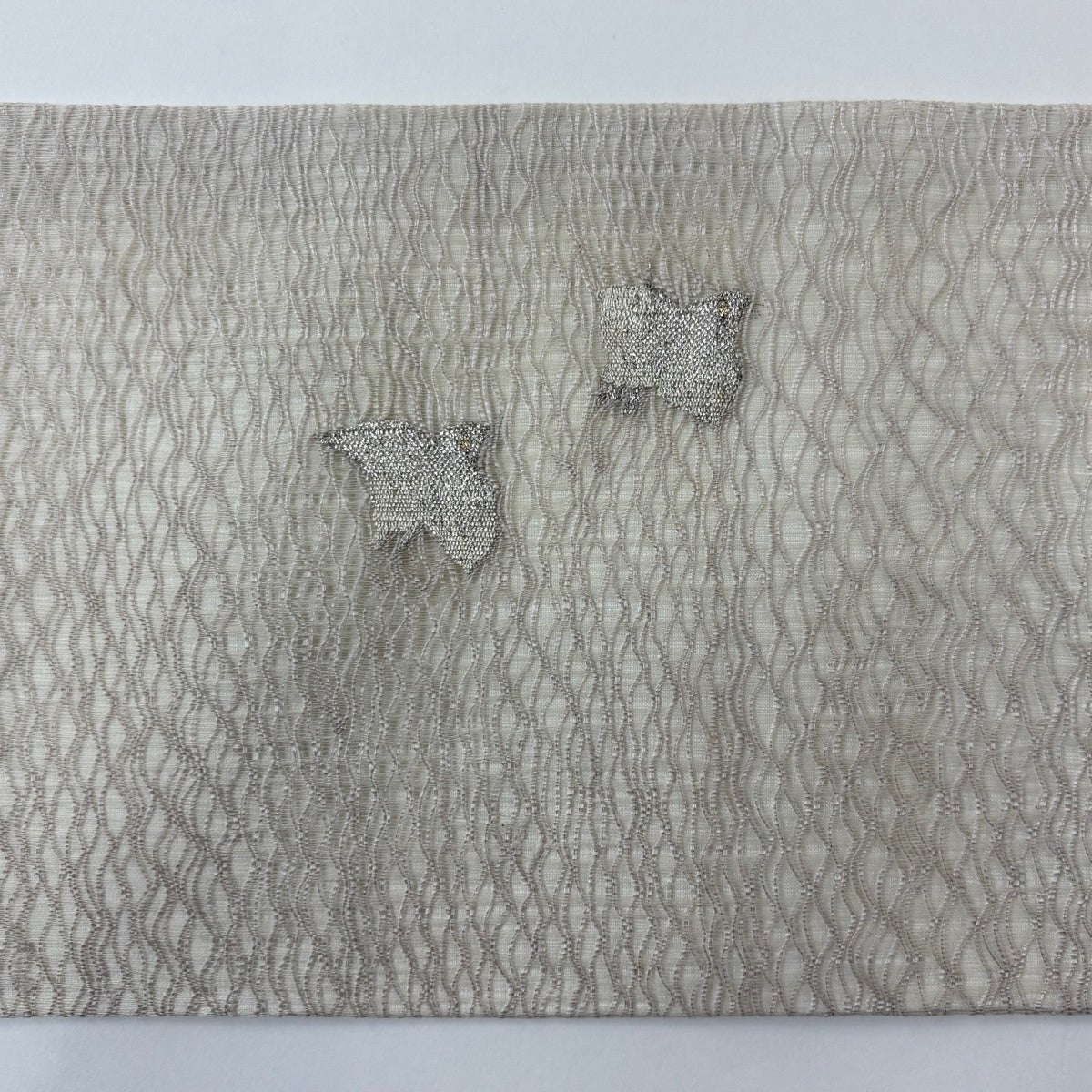 名古屋帯 名品 夏帯 絽 羊 金銀糸 灰白 正絹