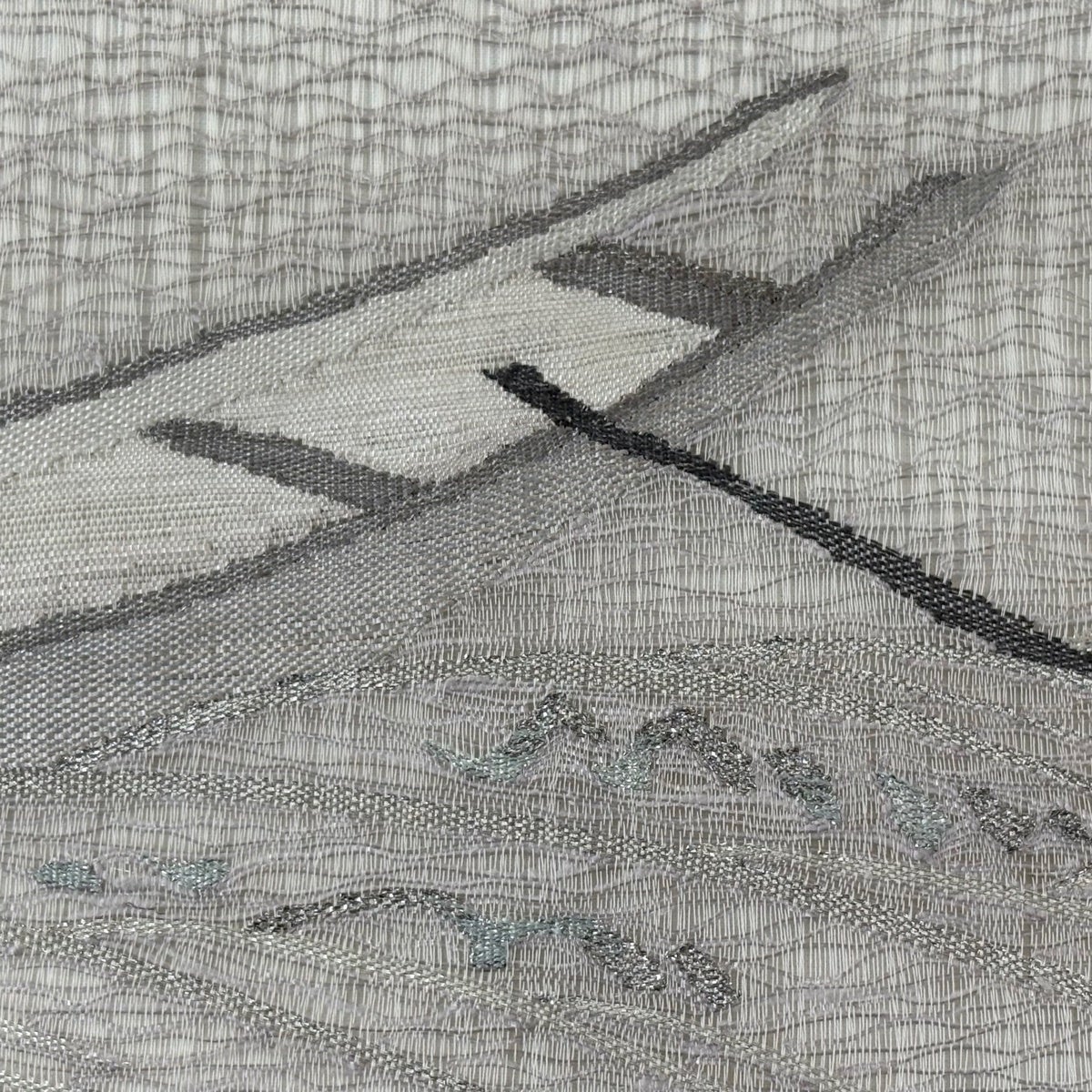袋帯 秀品 夏帯 紗 薫風 波 幾何学 箔 青灰色 六通 正絹