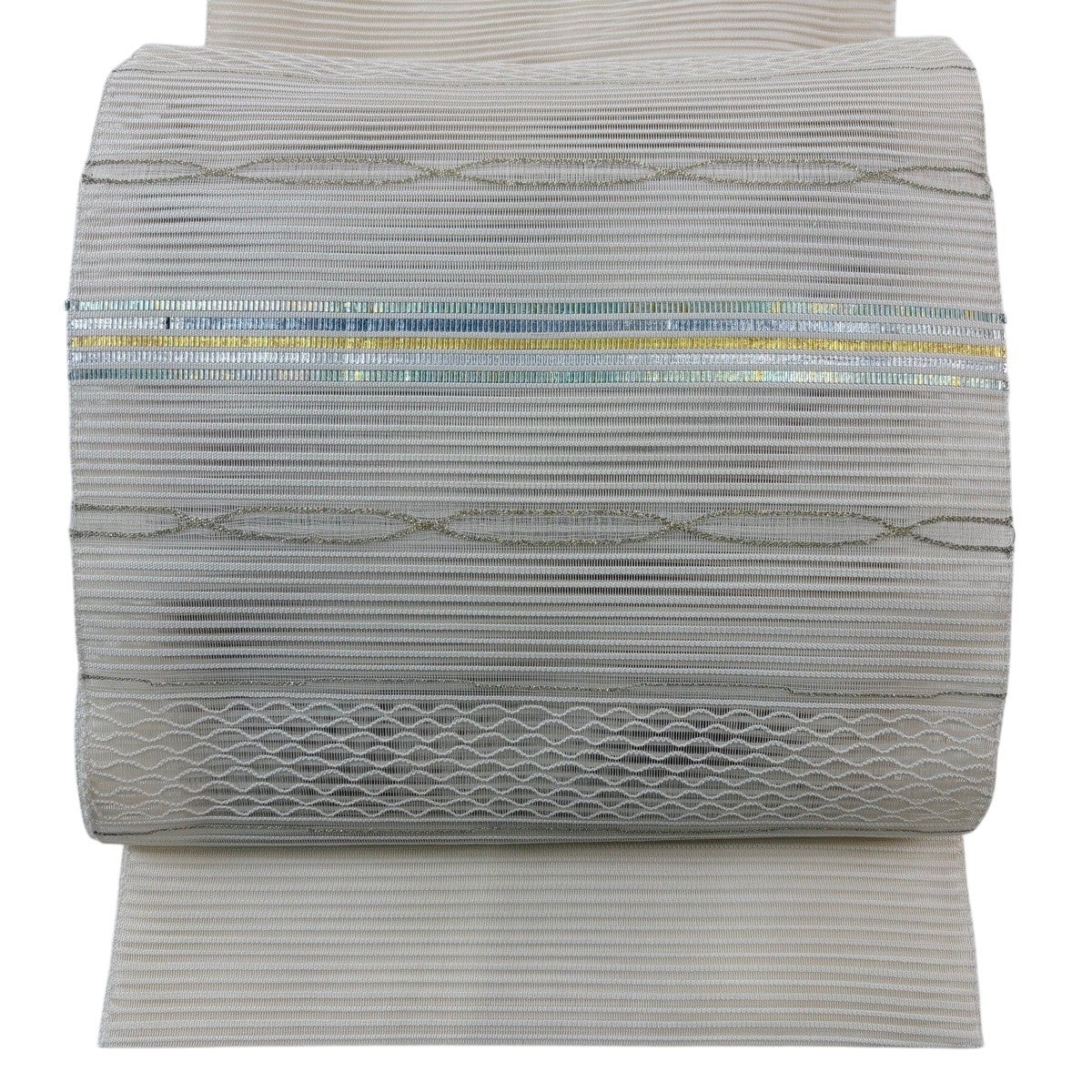 袋名古屋帯 逸品 渦巻き 霞 銀通し 灰白 正絹