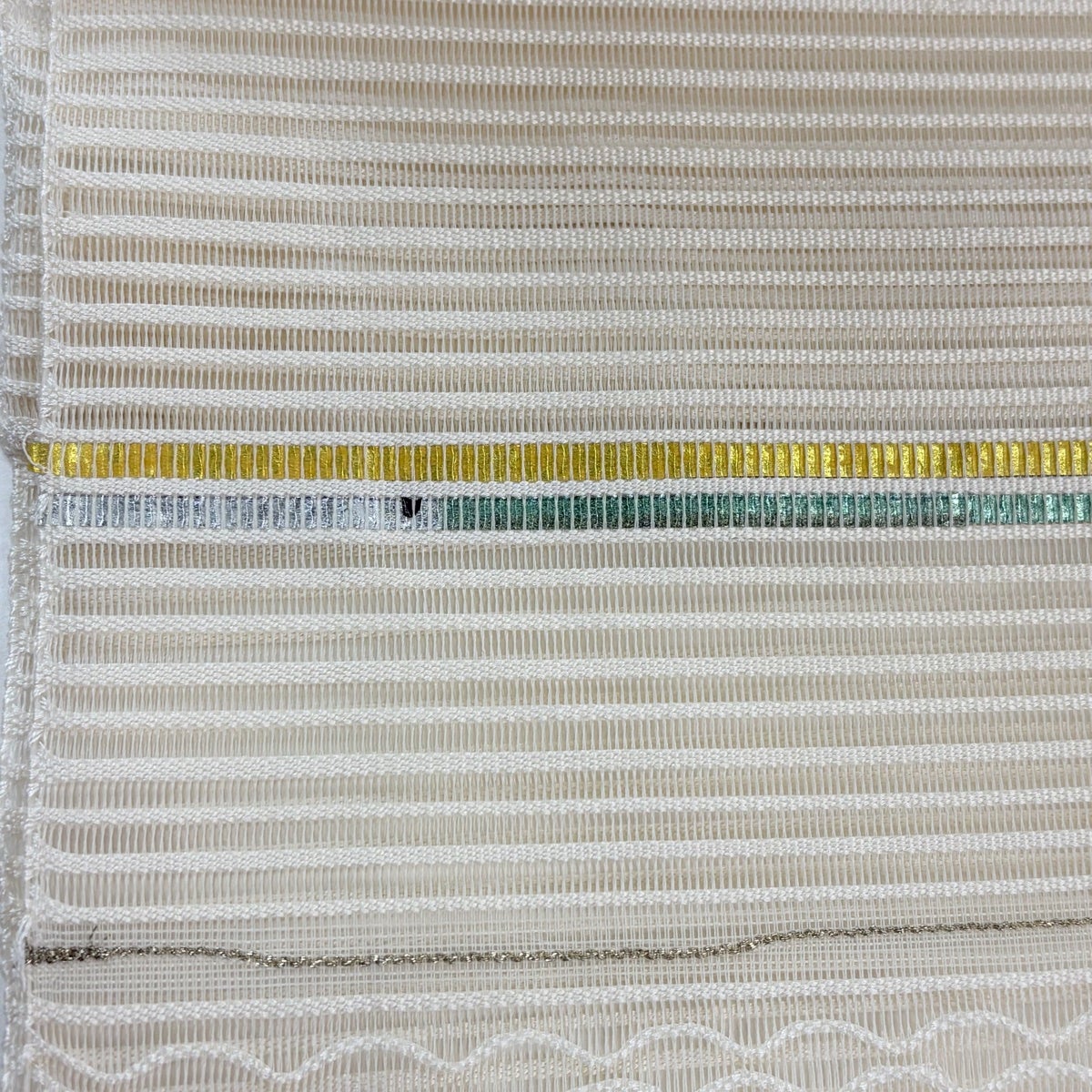 【美品】 袋帯 逸品 前田仁仙 落款あり 縞 動物 銀糸 緑 全通 正絹