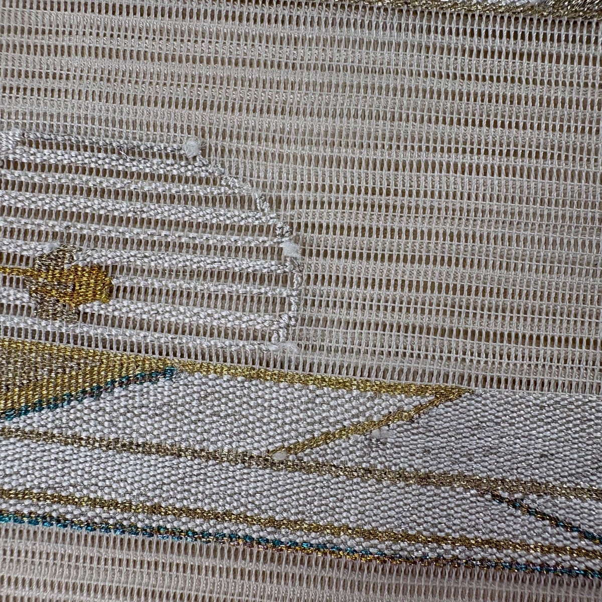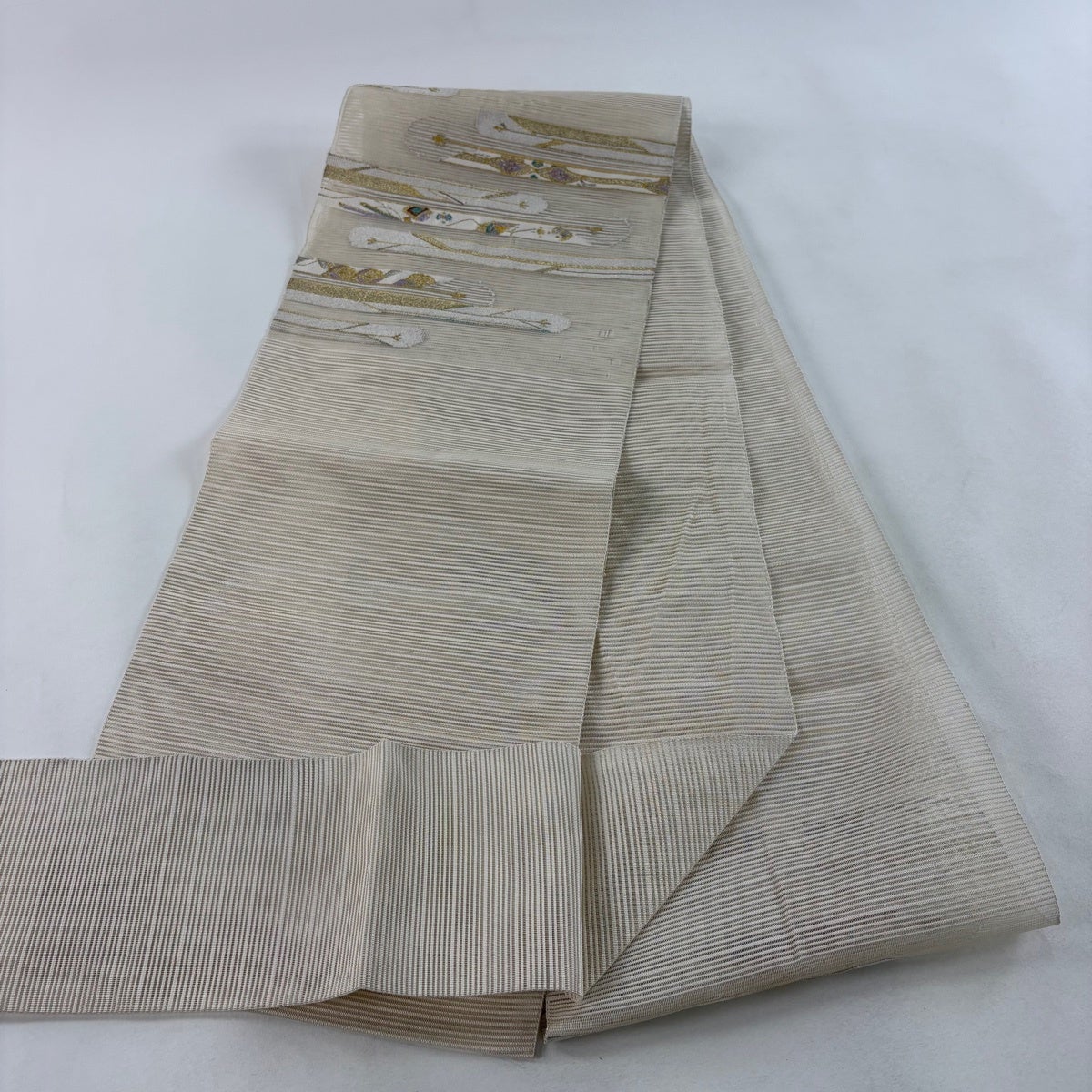 名古屋帯 秀品 夏帯 絽 幾何学 よろけ縞 金銀糸 ベージュ 正絹