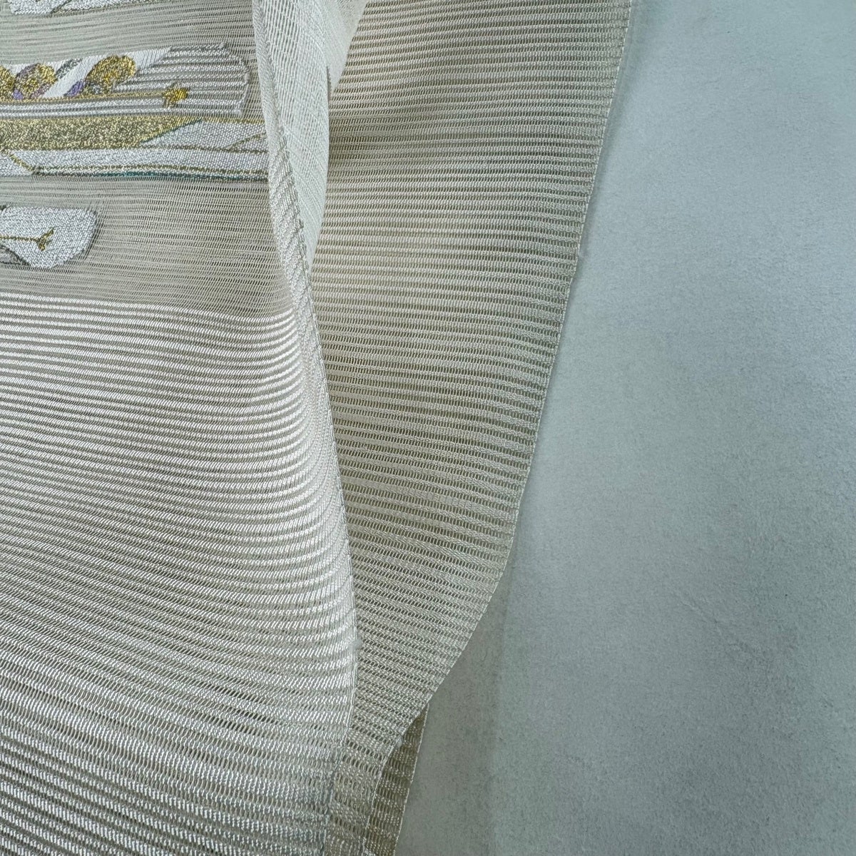 名古屋帯 優品 紫陽花 シルエット 刺繍 金銀糸 クリーム 正絹
