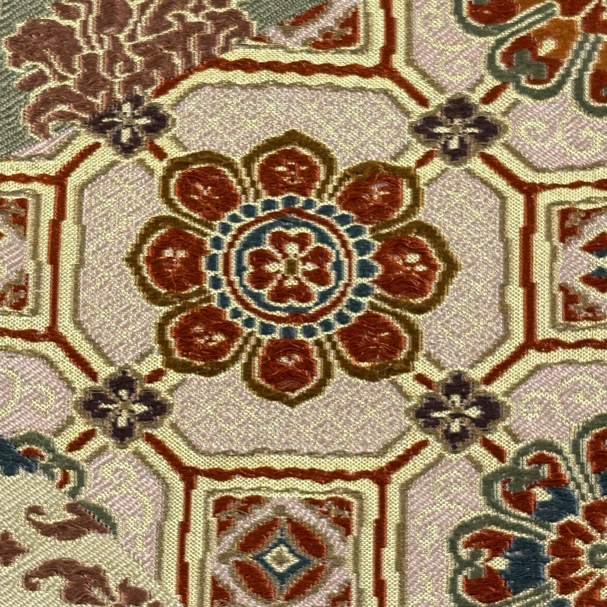 袋帯 秀品 華文 箔 唐織 クリーム 六通 正絹