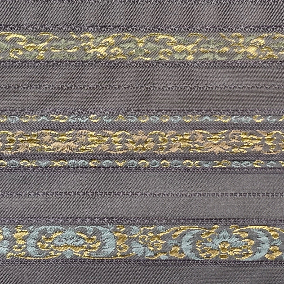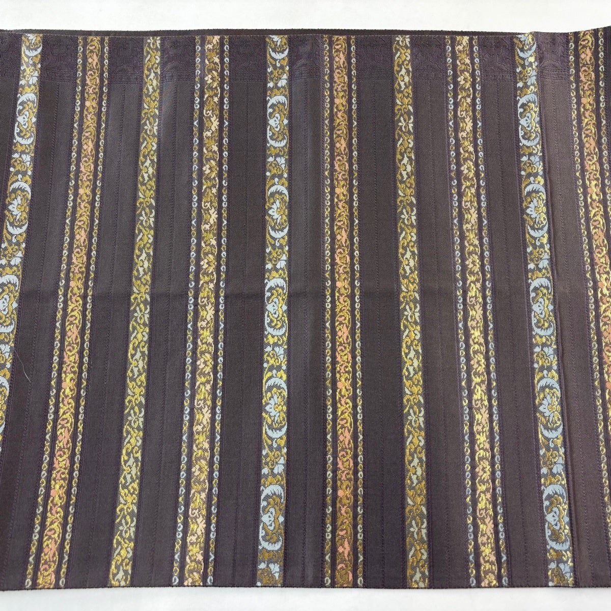 袋帯 秀品 夏帯 菊 縞 金糸 薄小豆 お太鼓柄 正絹