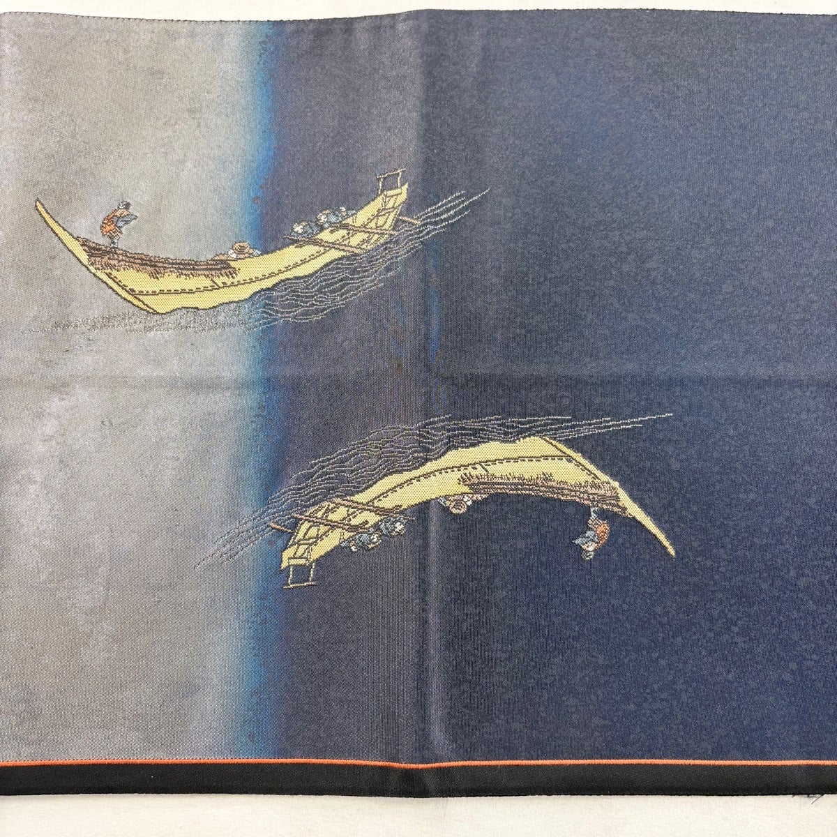 袋名古屋帯 秀品 楓 筏 金糸 唐織 灰茶 正絹