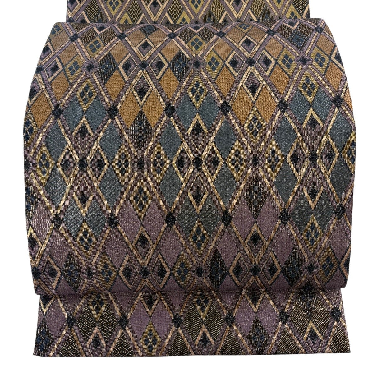 袋帯 名品 帝王紫 落款あり 錦波秋草模様 ススキ 金糸 箔 薄紫 お太鼓柄 正絹