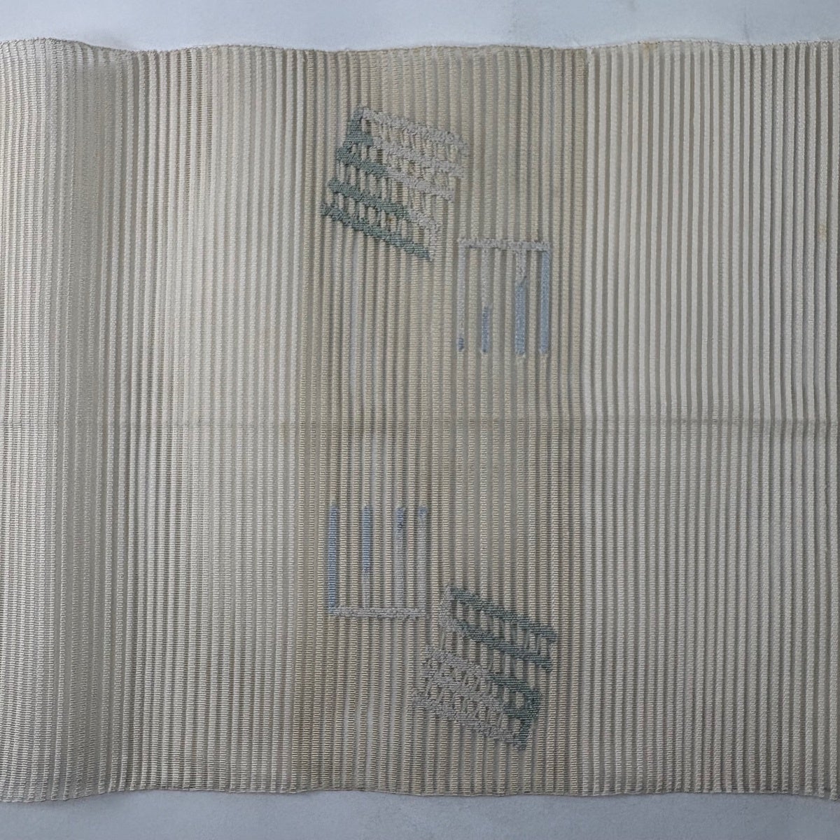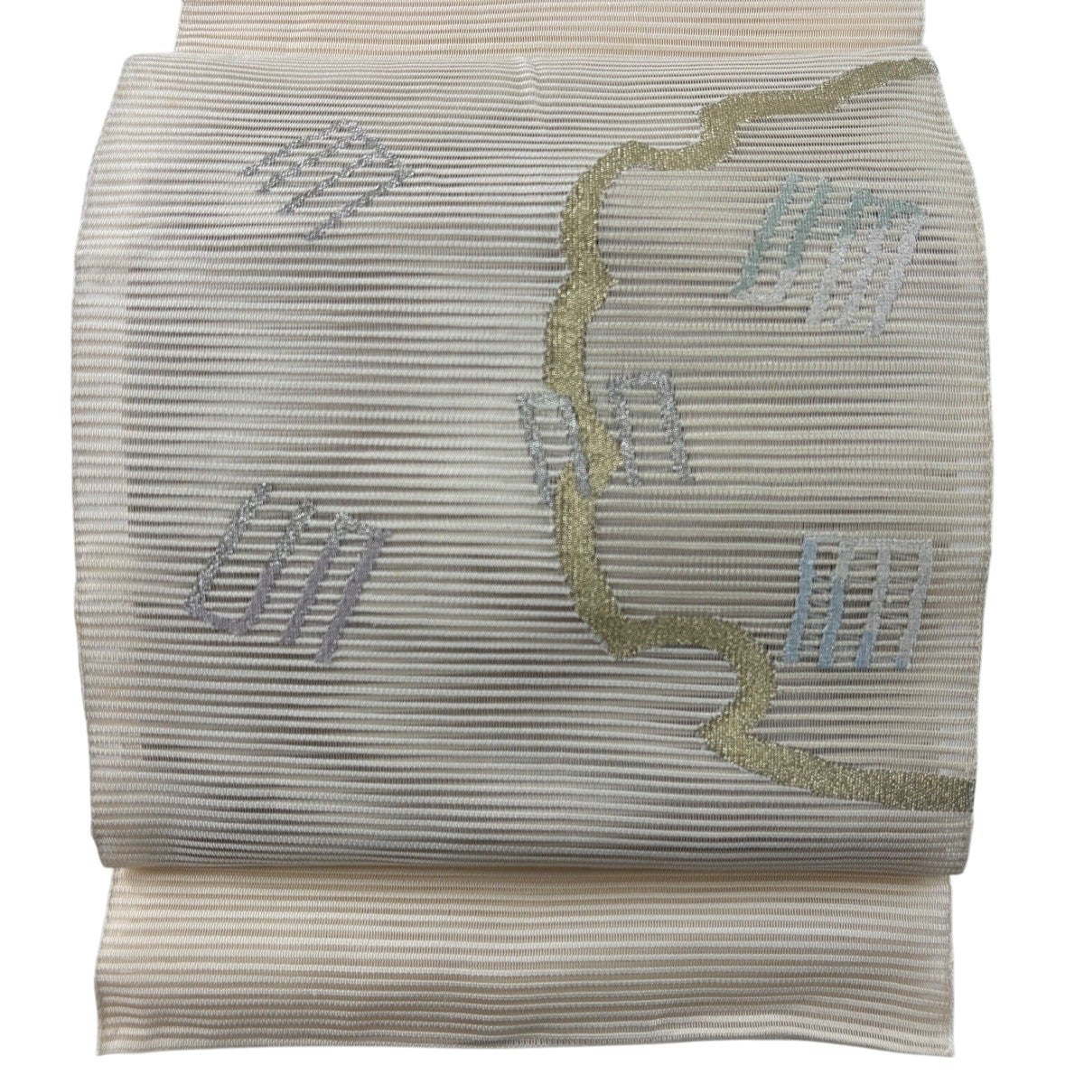 名古屋帯 秀品 夏帯 絽 草花 流水 金銀糸 ベージュ 正絹