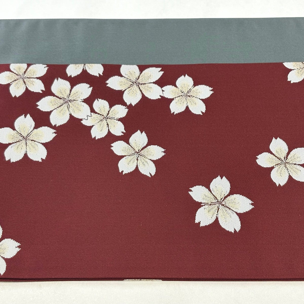 袋帯 秀品 二代目清次郎 落款あり 草花 花びら 箔 灰色 お太鼓柄 正絹