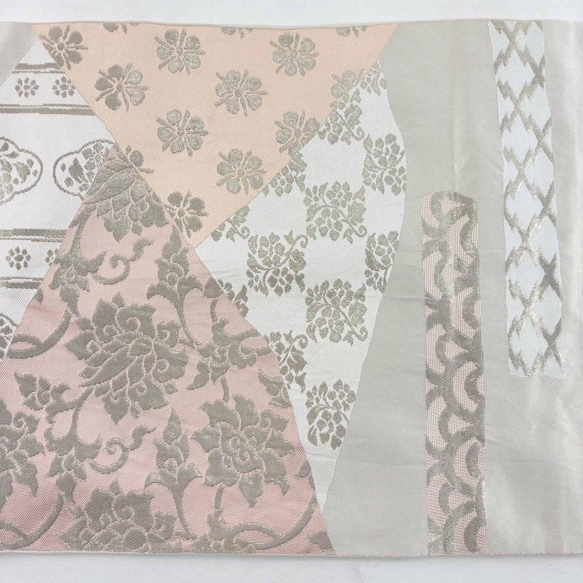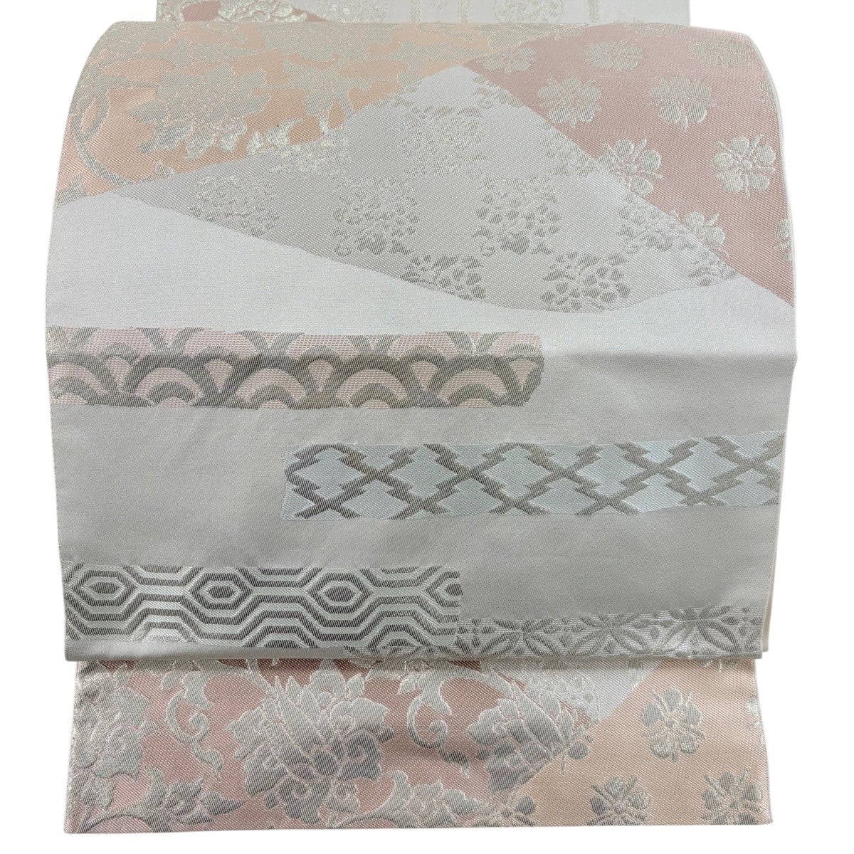 袋帯 逸品 となみ織物 落款あり 菱 箔 ピンク 六通 正絹