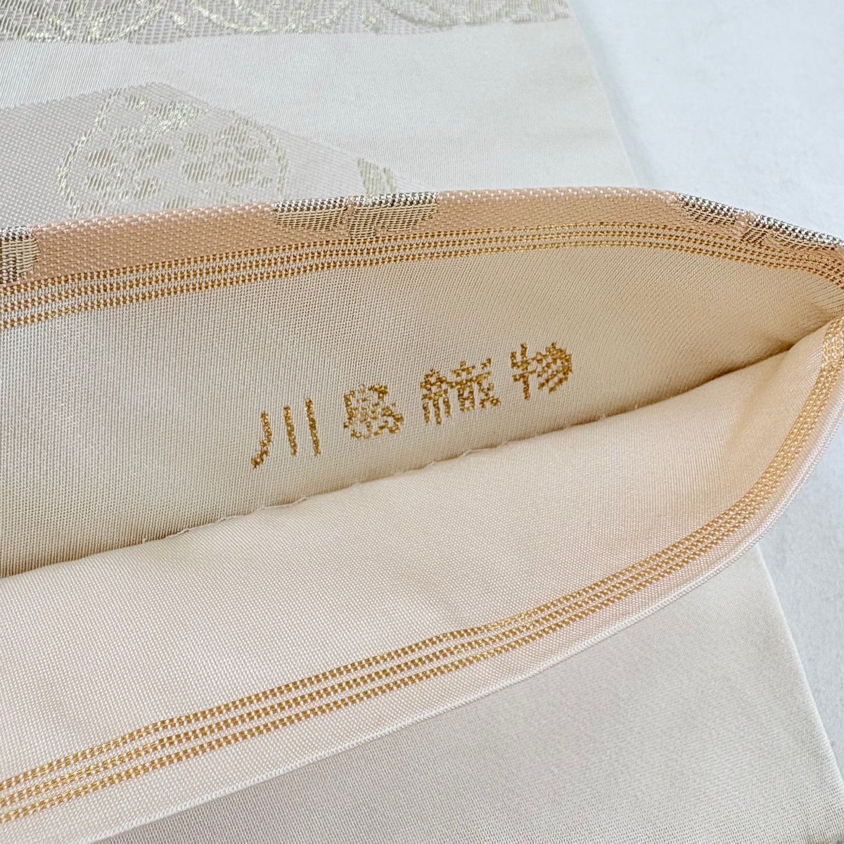 袋帯 秀品 川島織物 落款あり 関西仕立て 菱 波 刺繍 金銀糸 クリーム 六通 正絹