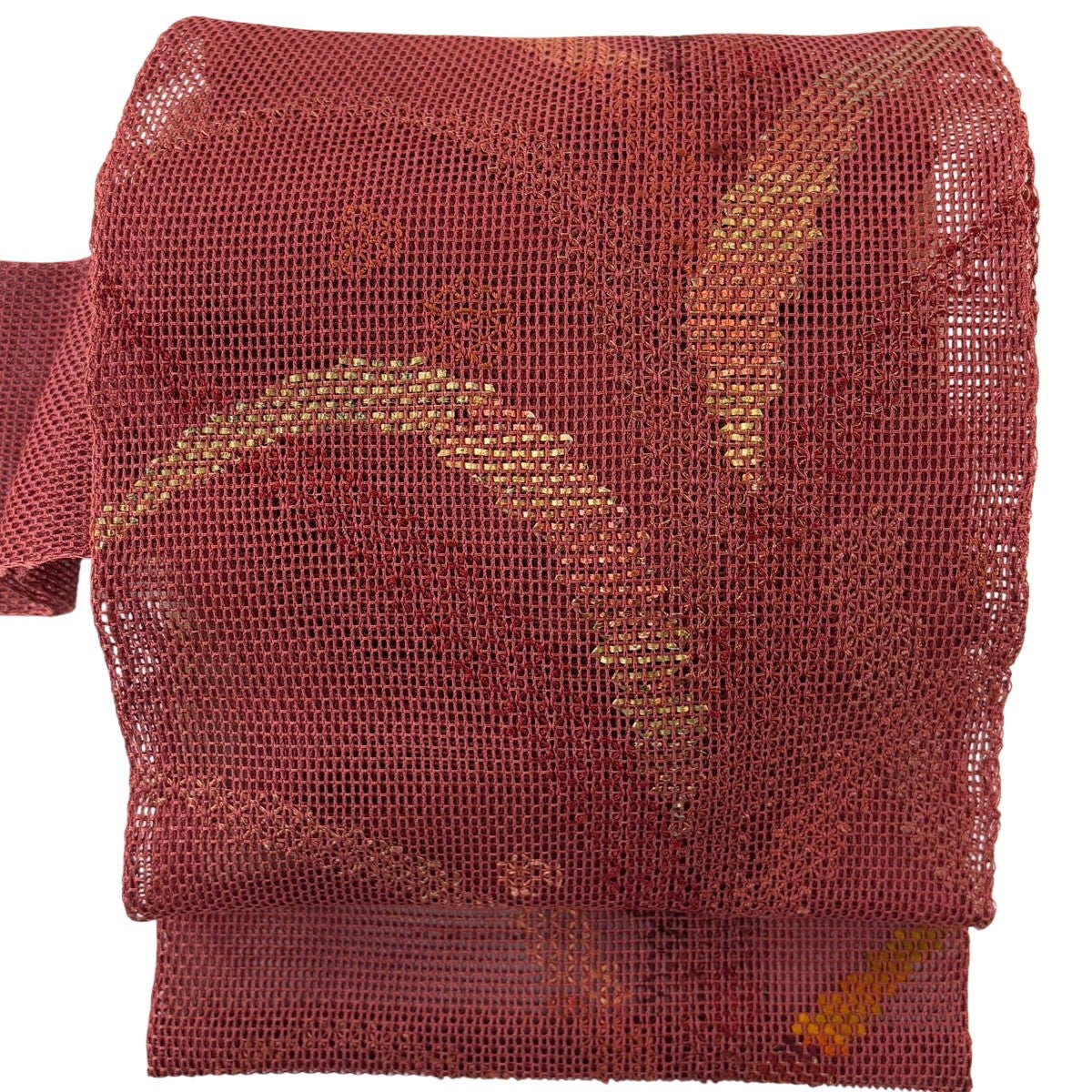 袋帯 名品 渡文 落款あり 証紙あり 草花 金糸 箔 赤茶 六通 正絹