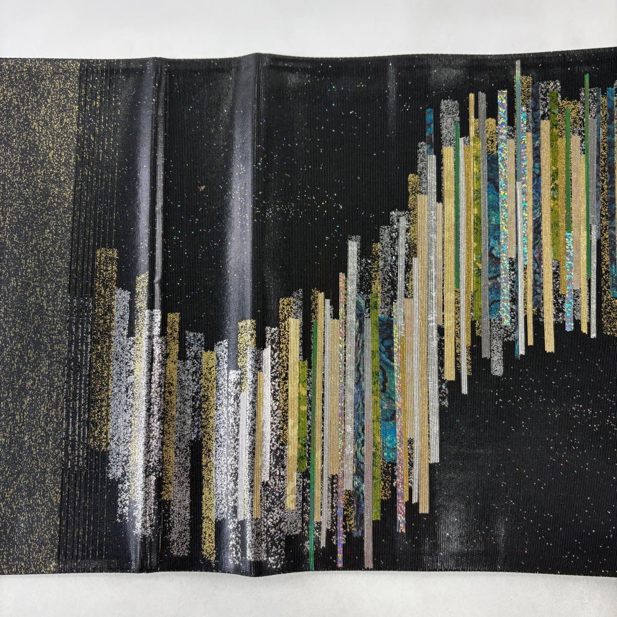 【美品】 袋帯 秀品 横段 幾何学 ラメ箔 黒 お太鼓柄 正絹