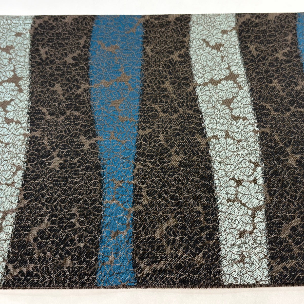 【美品】 袋帯 秀品 花 縞 金糸 刺繍 黒 全通 正絹