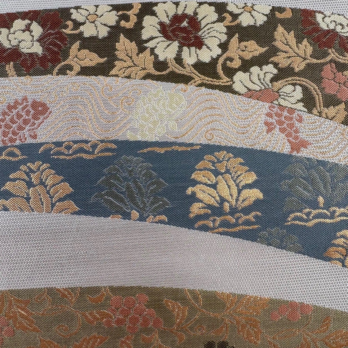 【美品】 袋帯 名品 大島紬吉祥柄百段文 箔 茶色 全通 正絹