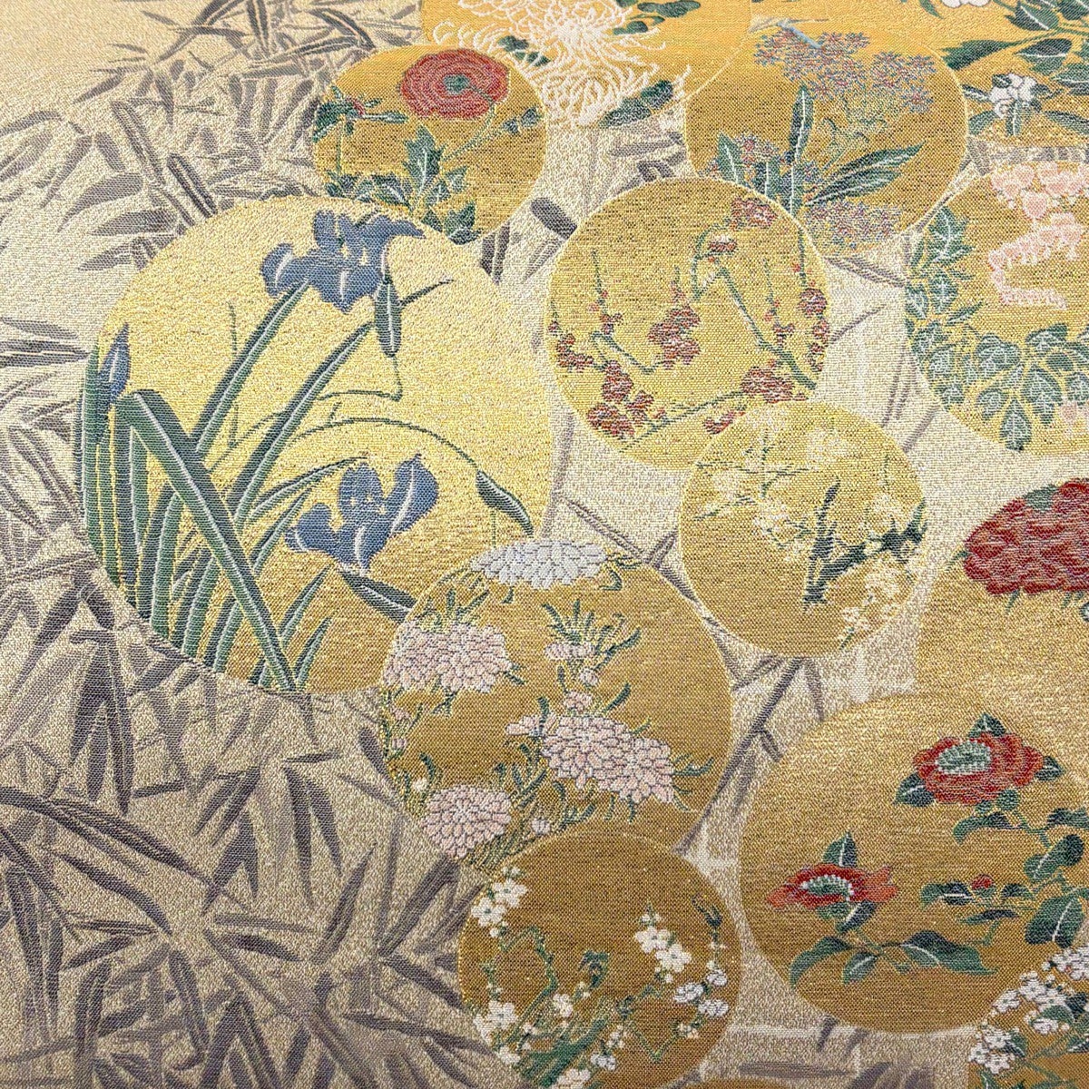 【美品】 袋帯 秀品 竹 草花 箔 金色 お太鼓柄 正絹