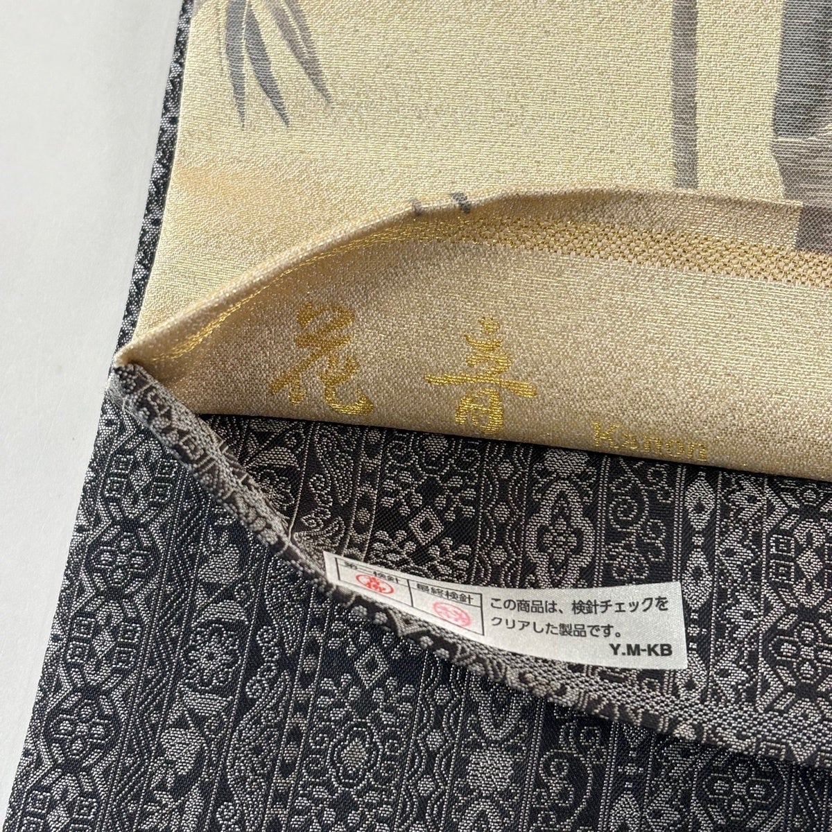 【美品】 袋帯 秀品 落款あり 縞 幾何学 金銀糸 黒 六通 正絹
