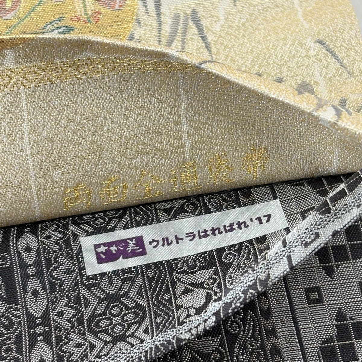 【美品】 袋帯 名品 桜 箔 灰色 全通 正絹