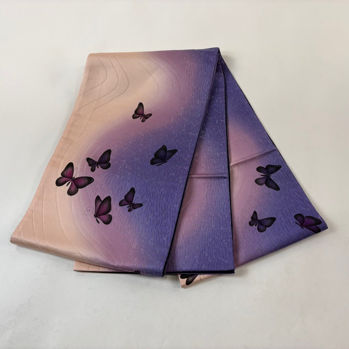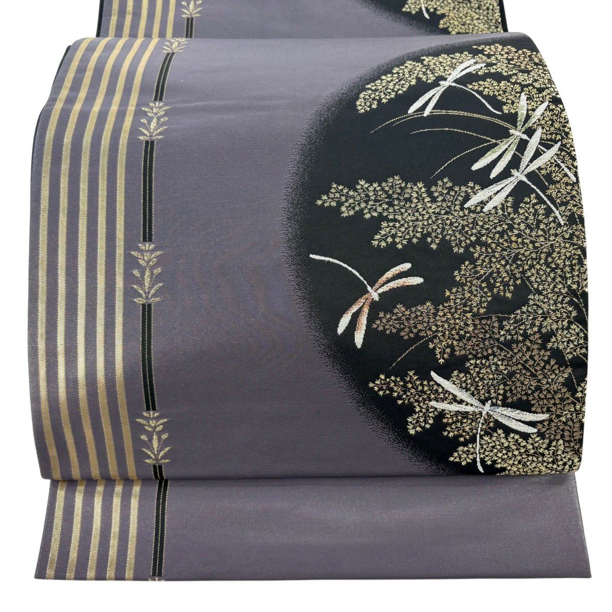 【美品】 袋帯 秀品 華文 草花 金糸 金彩 灰紫 お太鼓柄 正絹