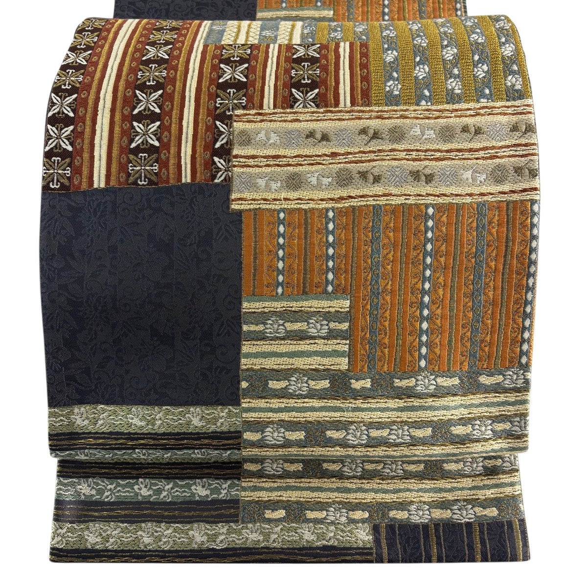 【美品】 袋帯 秀品 縞 幾何学模様 金銀糸 黒 六通 正絹