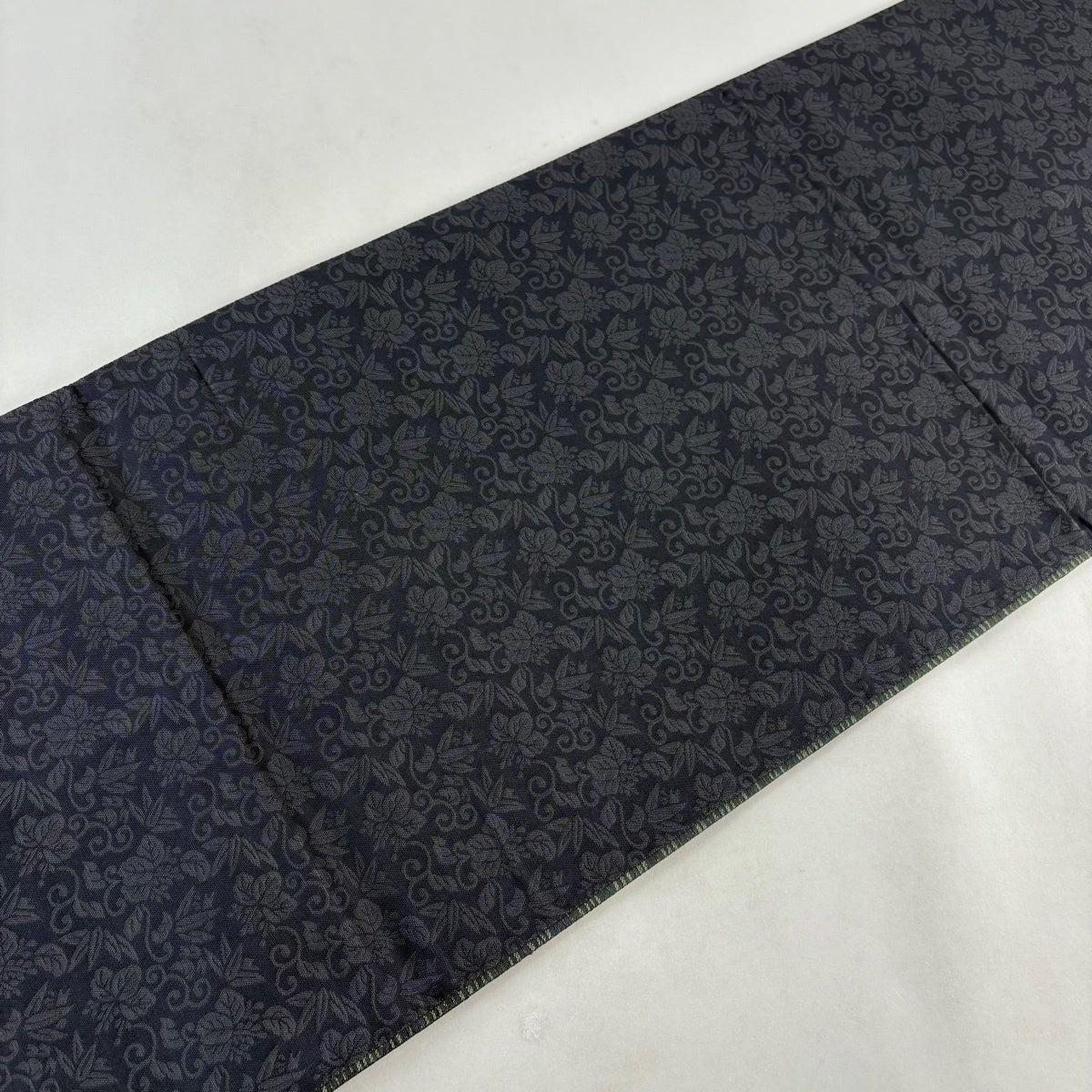【美品】 袋帯 名品 縞 花唐草 金糸 墨色 六通 正絹