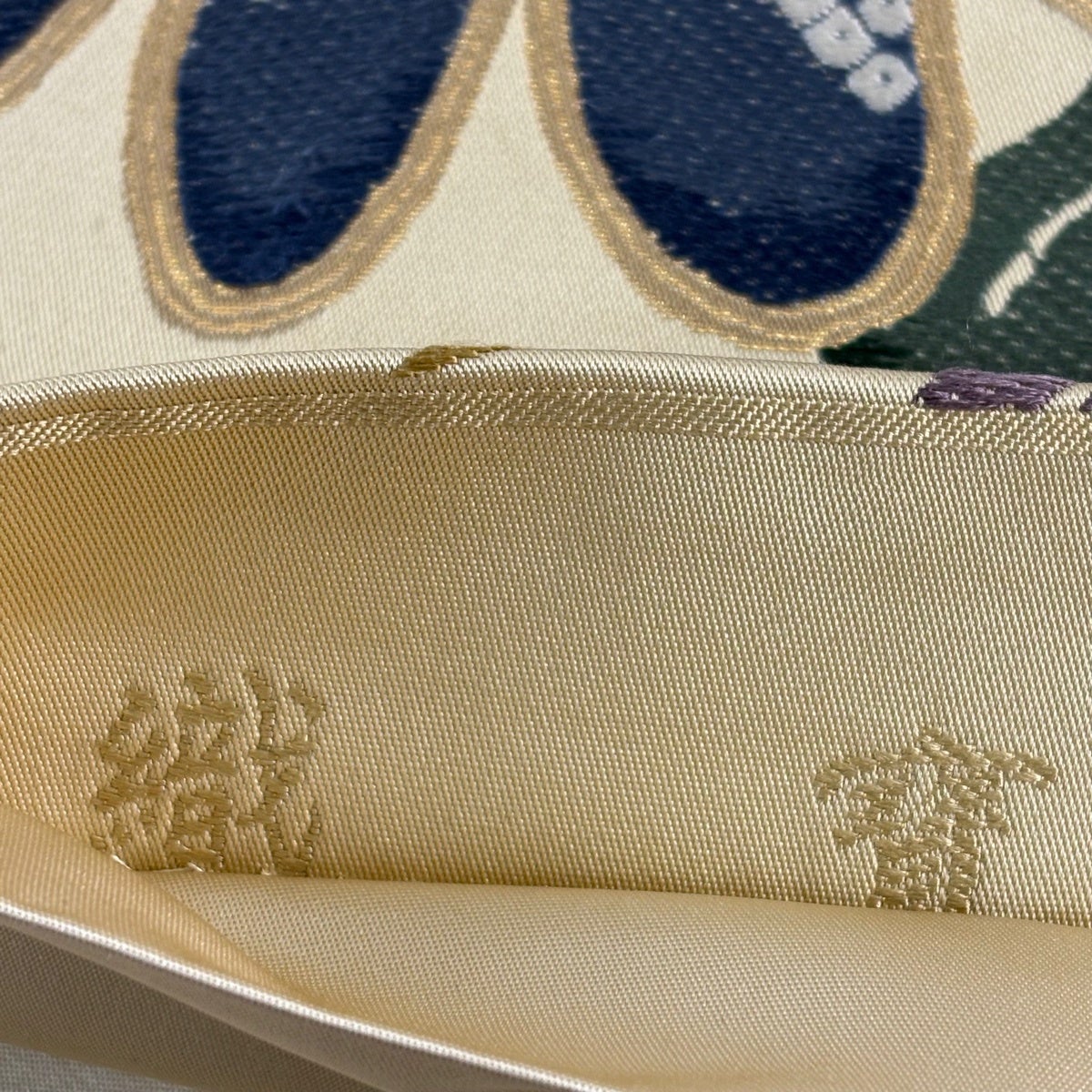 【美品】 袋帯 名品 浮線綾文 金糸 箔 クリーム 六通 正絹