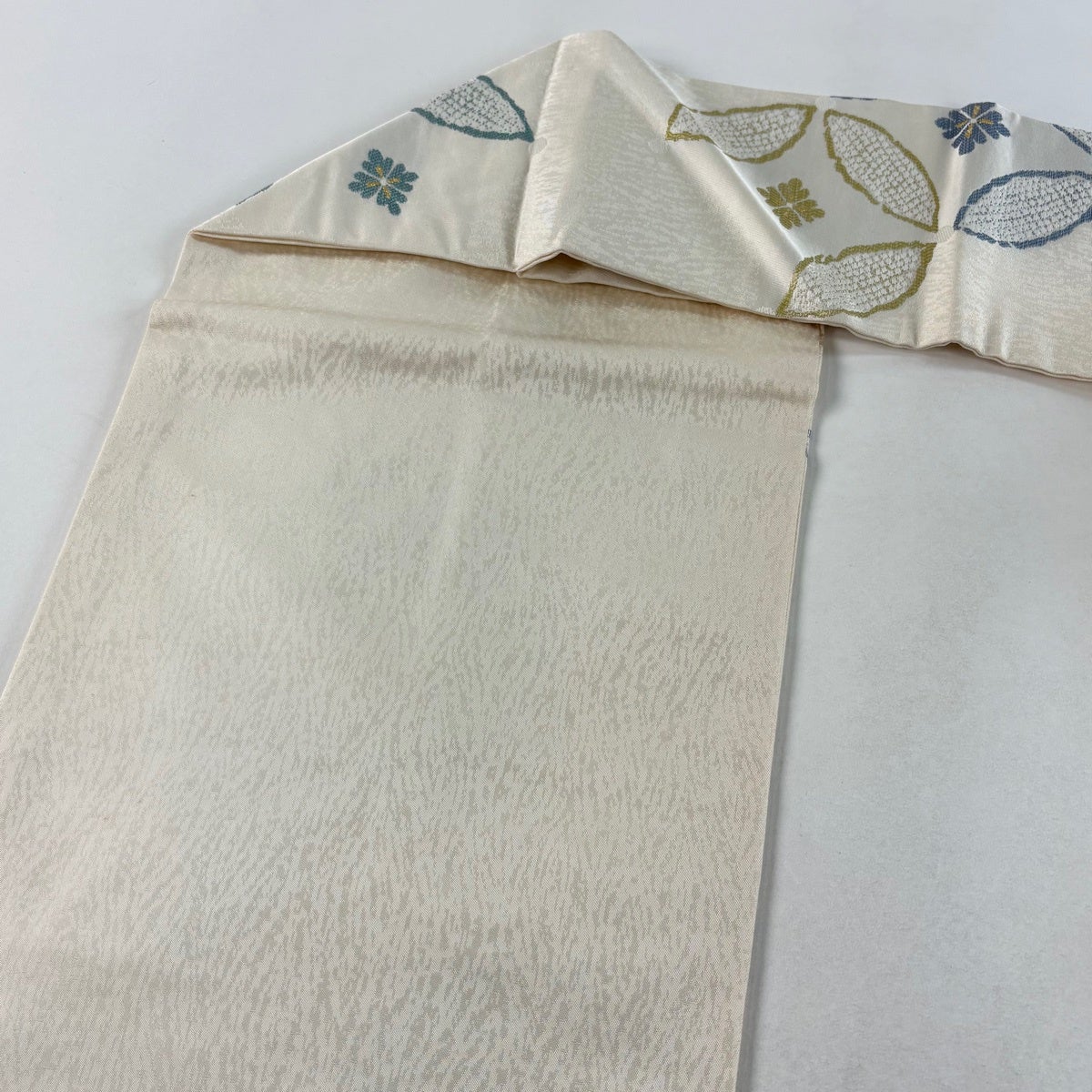 【美品】 袋帯 秀品 全通 万葉織 千彩霞 箔 灰緑 全通 正絹