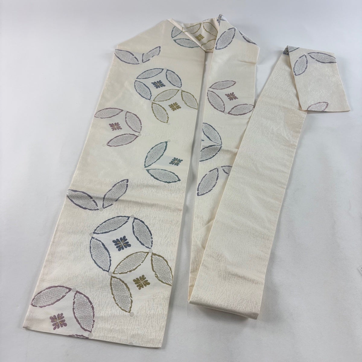 【美品】 名古屋帯 秀品 七宝 花菱 金銀糸 クリーム 正絹