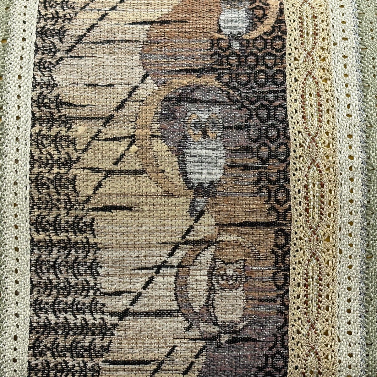 【美品】 袋帯 名品 やまと フクロウ 縞 箔 ベージュ 六通 正絹