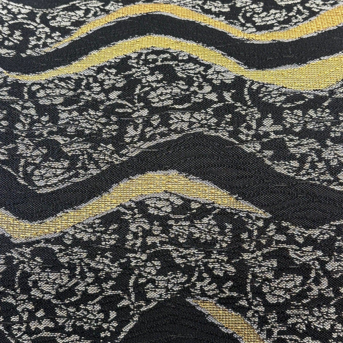 【美品】 袋帯 秀品 草花 有職文様 箔 黒 六通 正絹