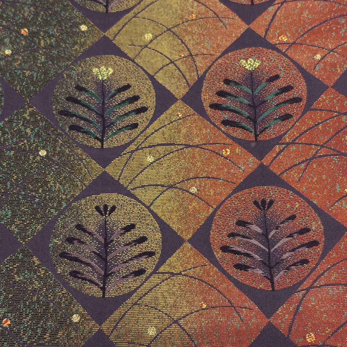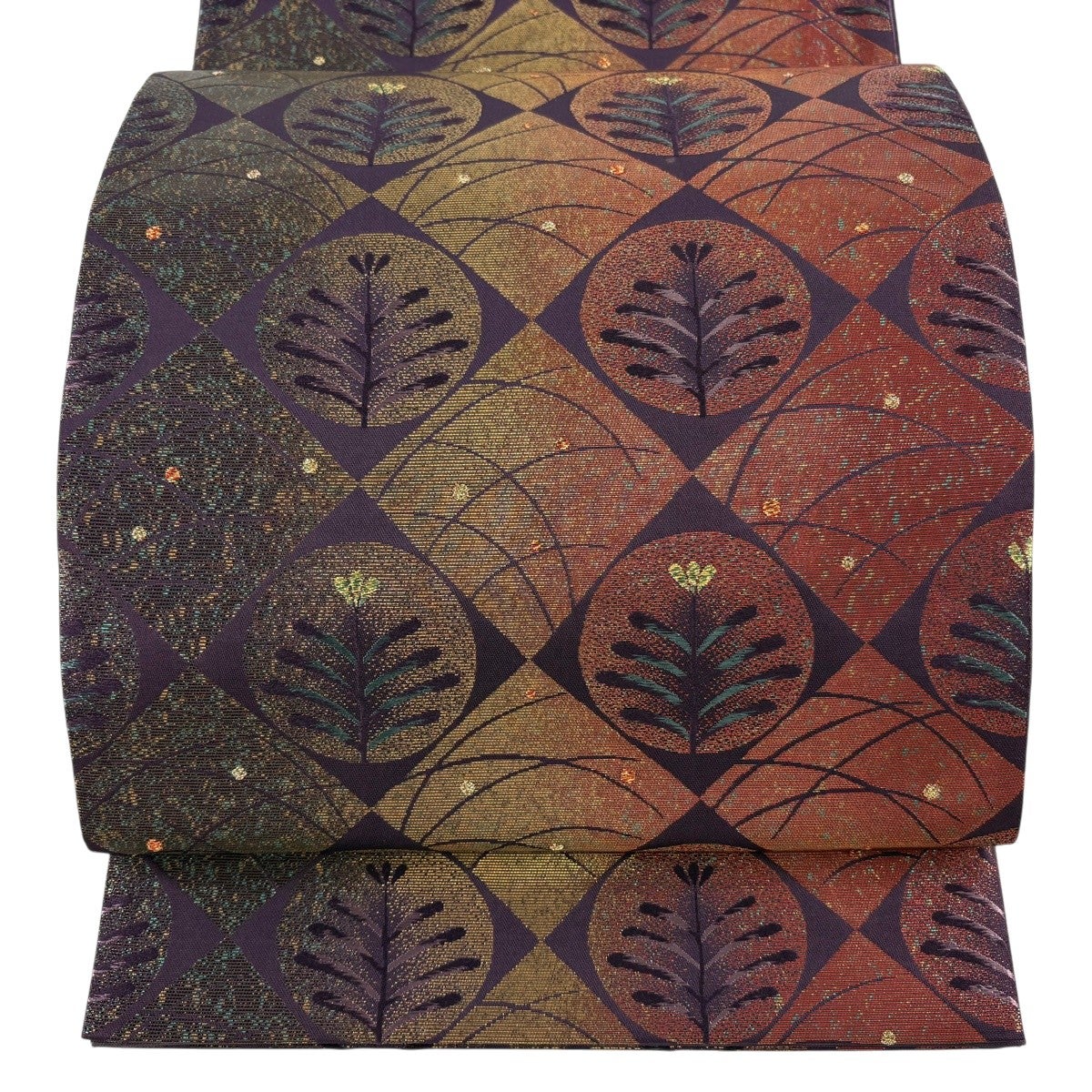 【美品】 袋帯 秀品 扇 草花 金銀糸 箔 えんじ色 六通 正絹