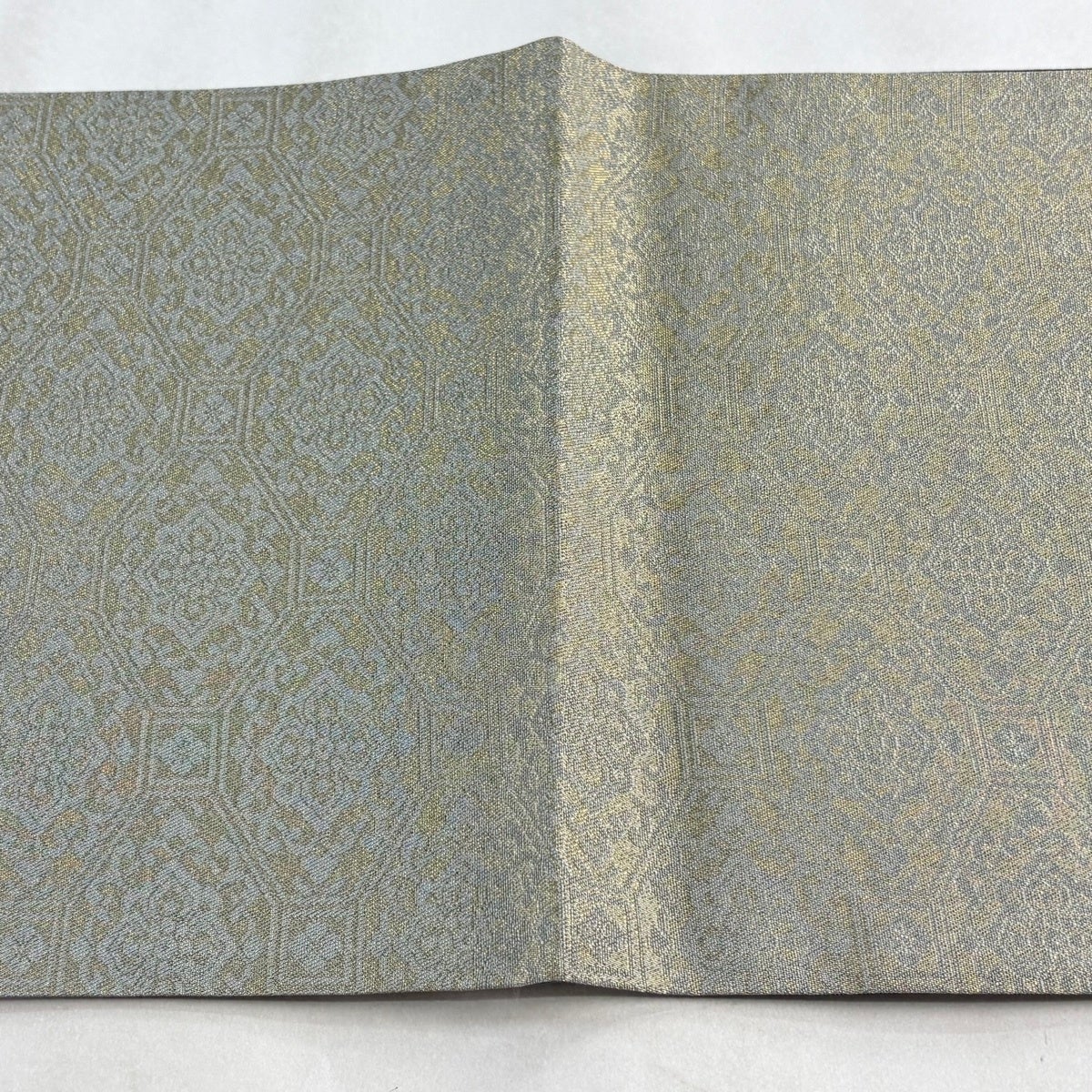 【美品】 袋帯 秀品 幾何学模様 金銀糸 ビロード風 ベージュ 六通 正絹