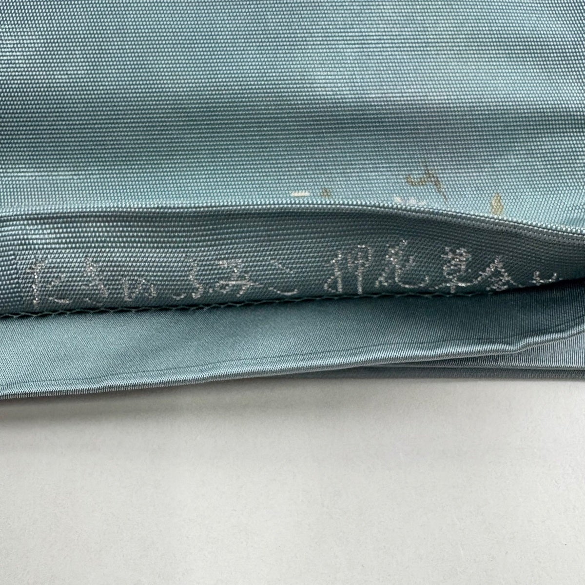 【美品】 袋帯 名品 龍 地紋 金糸 灰緑 お太鼓柄 正絹