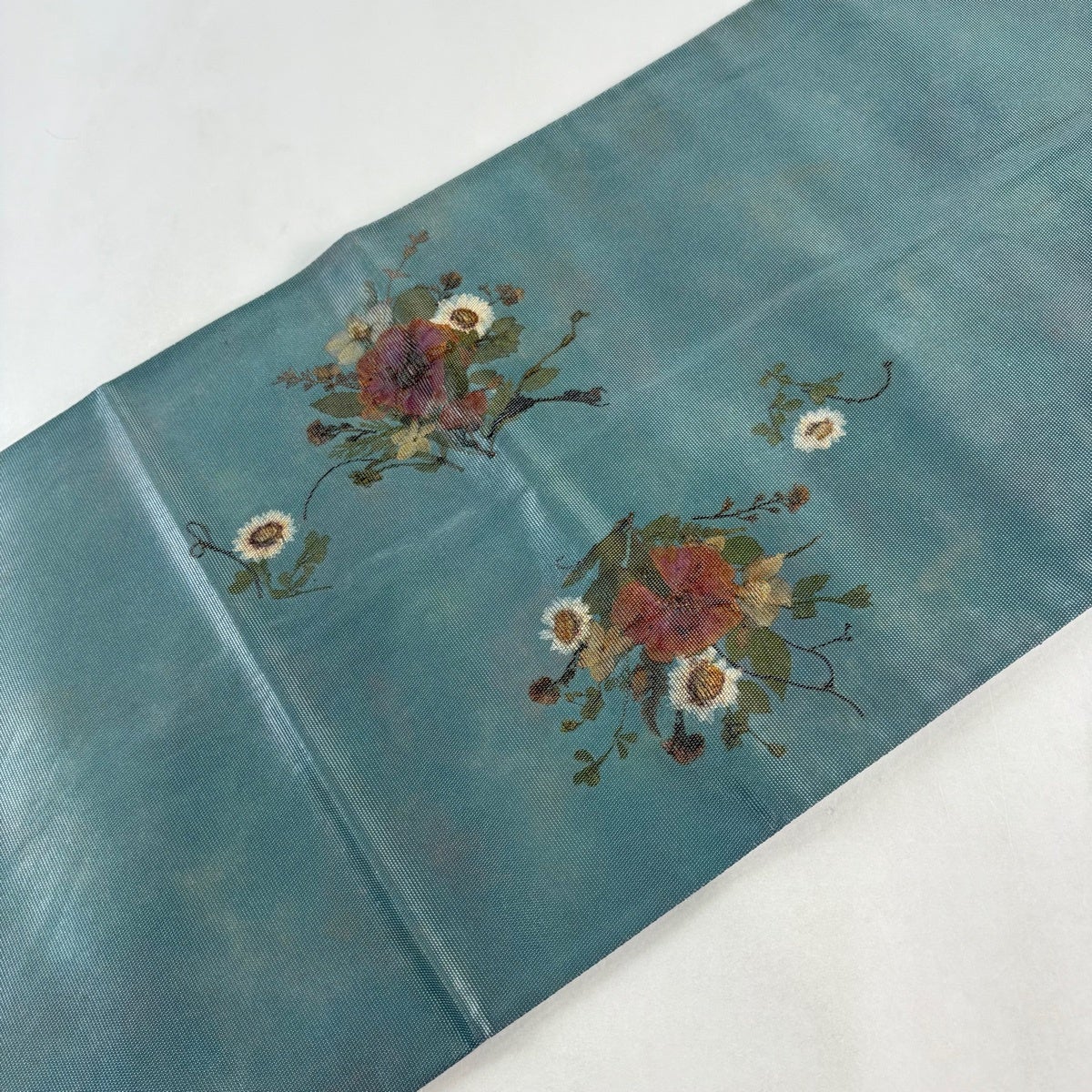 袋帯 名品 姫 草花 金糸 墨色 お太鼓柄 正絹