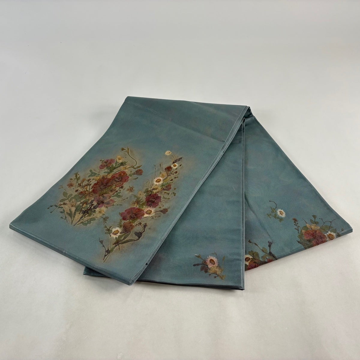 袋帯 秀品 水面 金彩 銀糸 灰色 お太鼓柄 正絹