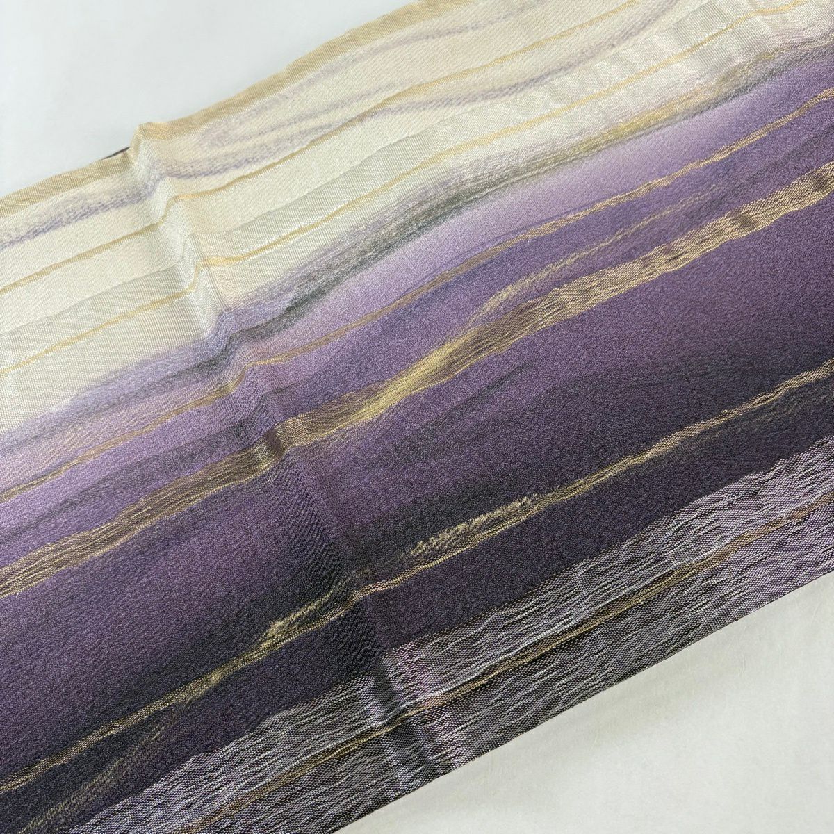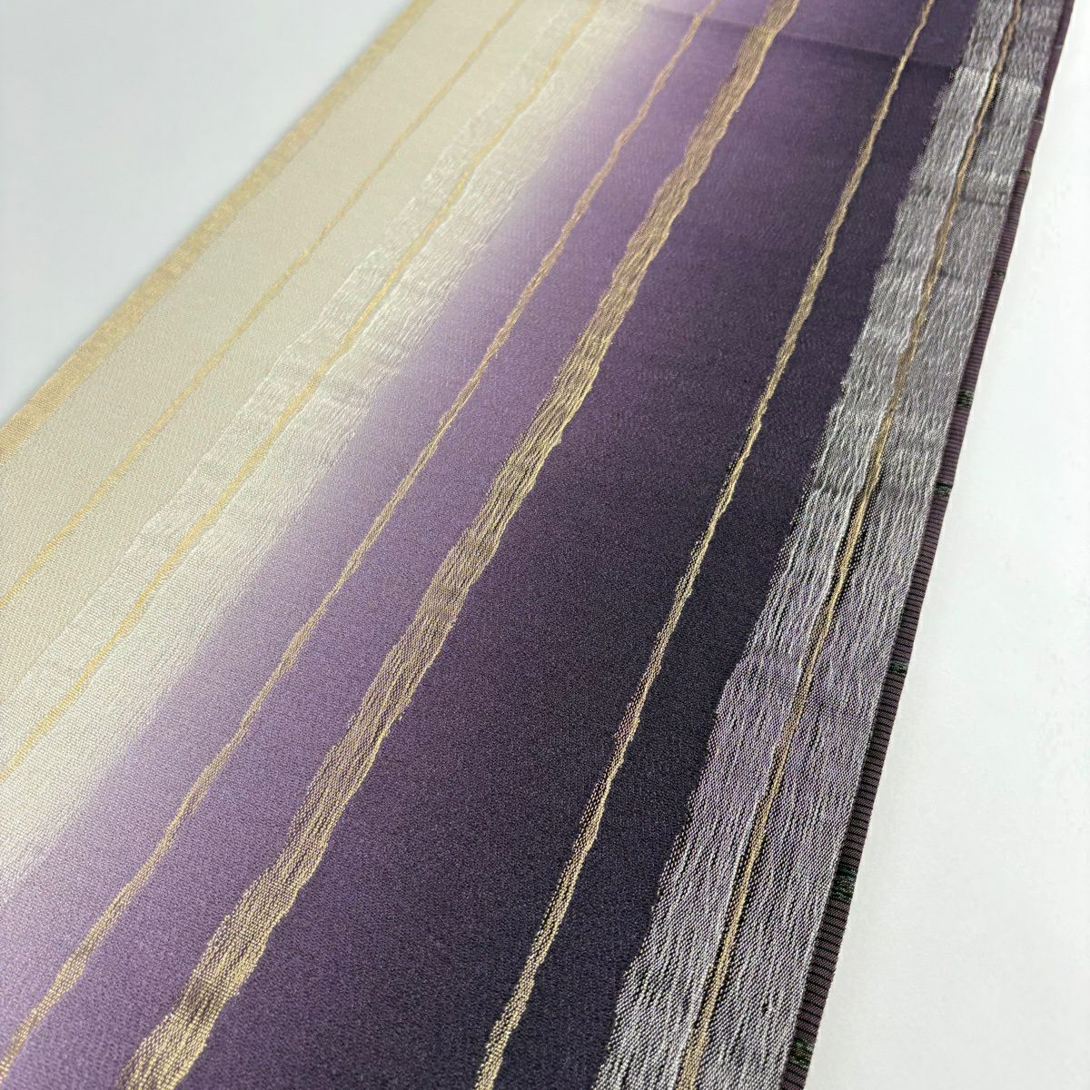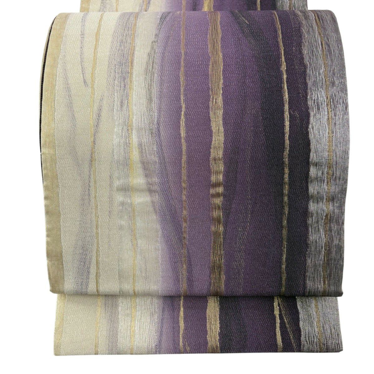 【美品】 袋帯 名品 縞 金銀糸 紫 全通 正絹