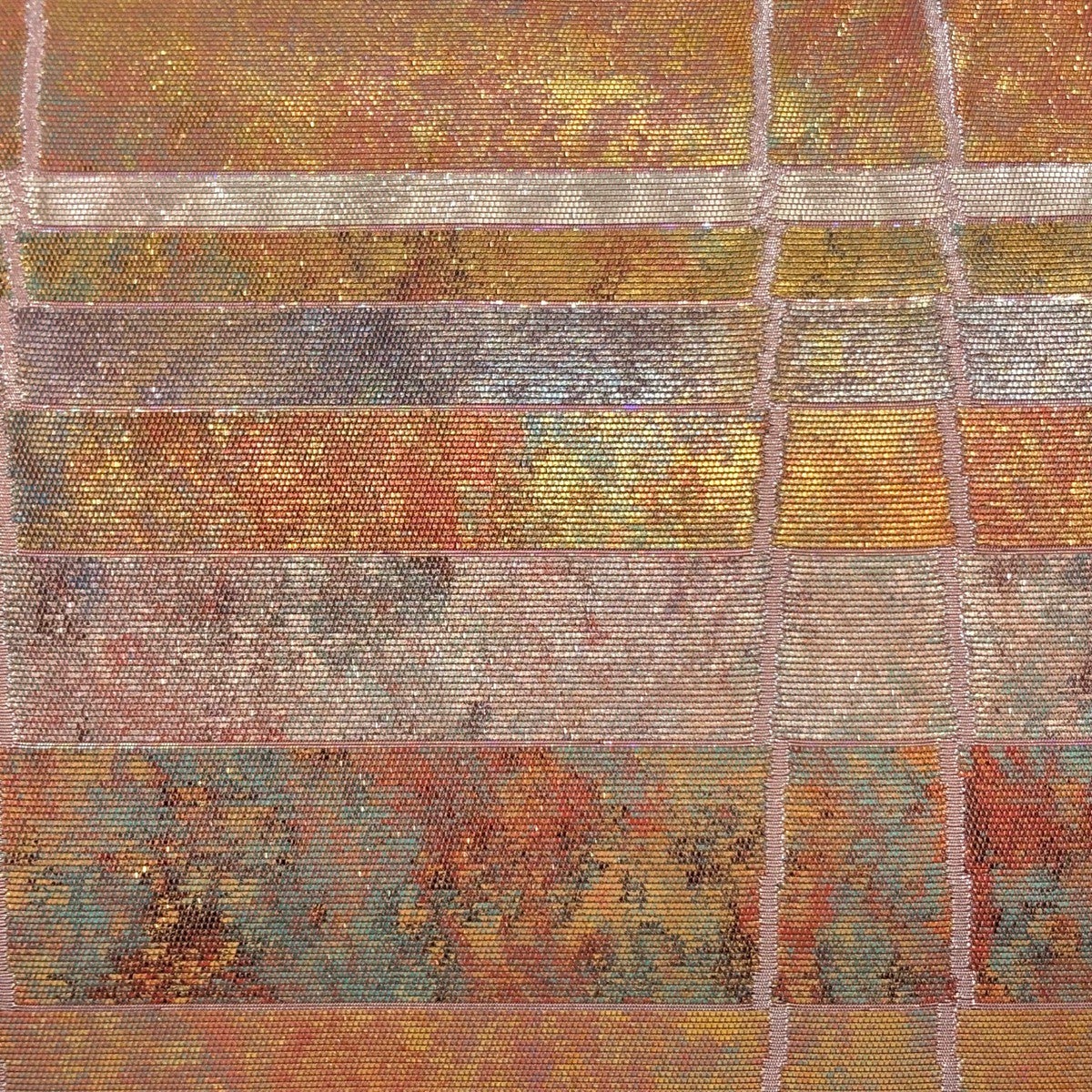 袋帯 秀品 幾何学 箔 銀糸 黒 六通 正絹