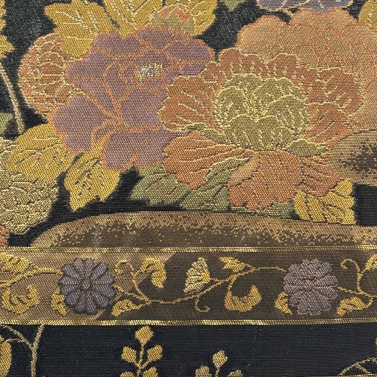 【美品】 袋帯 秀品 花柄 金糸 箔 金色 六通 正絹