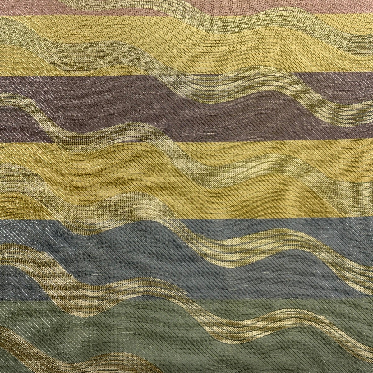 袋帯 秀品 よろけ縞 縞 金糸 灰緑 六通 正絹