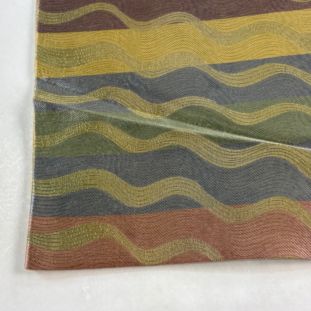 袋帯 名品 縞 ぼかし柄 金彩 茶色 全通 正絹