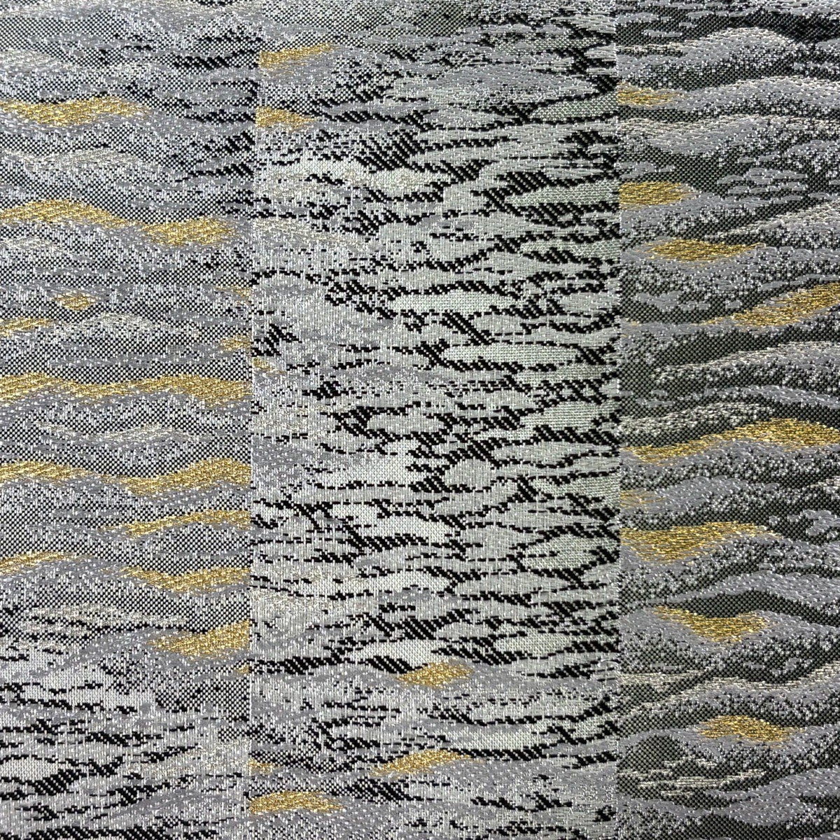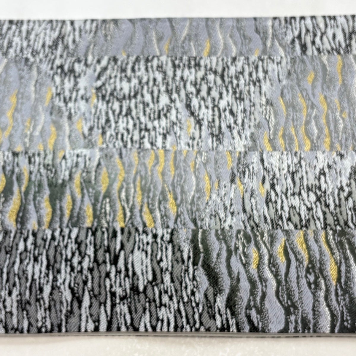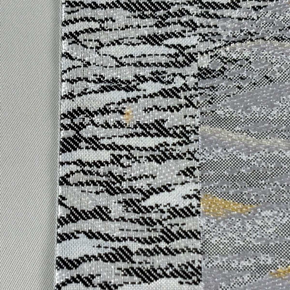 【美品】 袋帯 秀品 幾何学 金銀糸 箔 銀色 六通 正絹