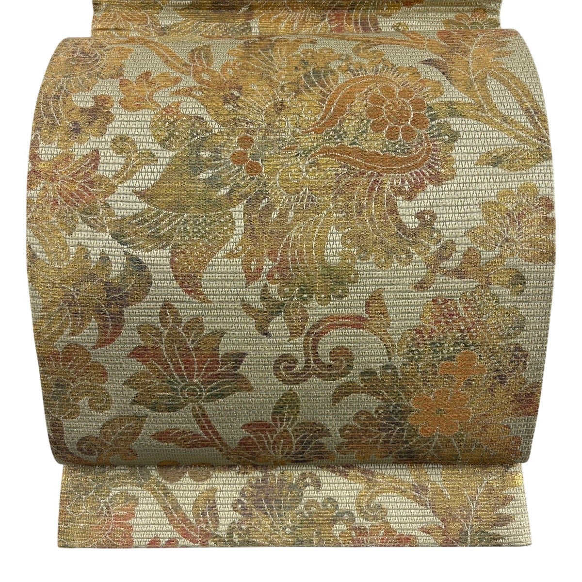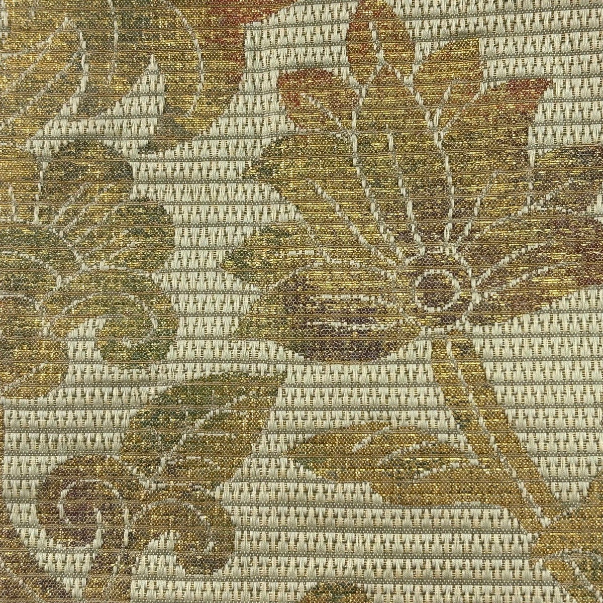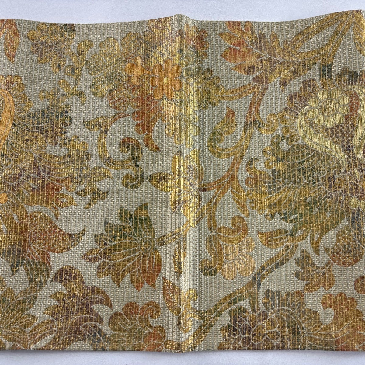 【美品】 袋帯 名品 菊唐草 楓 金彩 薄茶色 全通 正絹