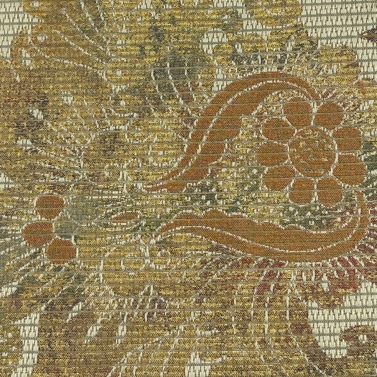 名古屋帯 優品 桧扇 草花 箔 金糸 オレンジ 正絹