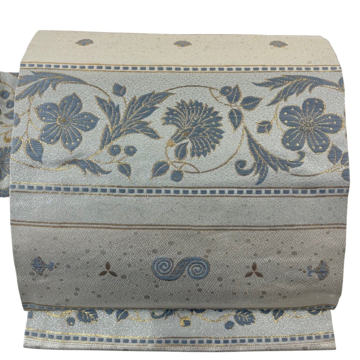 名古屋帯 優品 菊 箔 銀糸 銀色 正絹