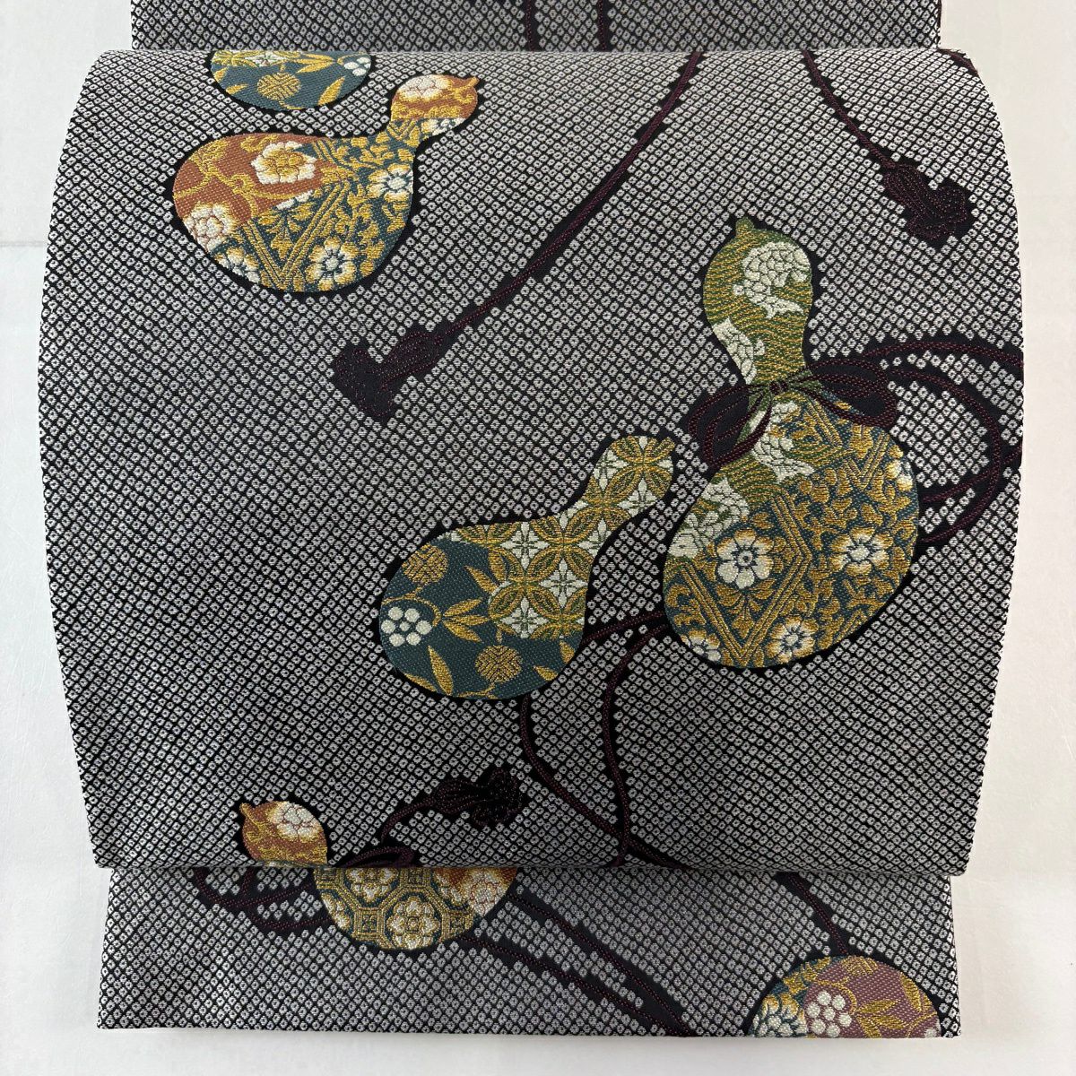 【美品】 袋帯 名品 幾何学 金糸 灰色 全通 正絹