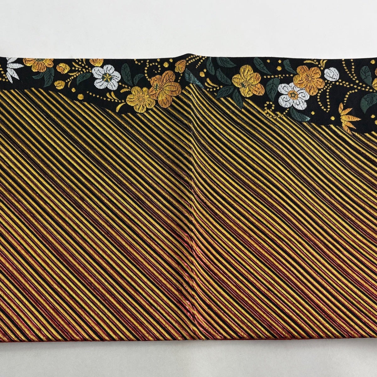 袋帯 秀品 斜縞 金糸 箔 金色 お太鼓柄 正絹