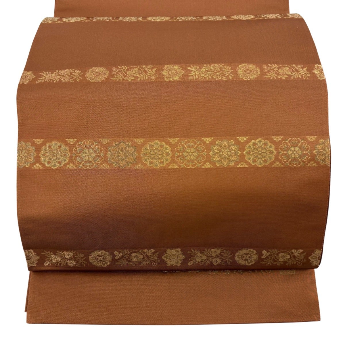 【在庫一掃】 袋帯 優品 関西仕立て 樹木 霞 金銀糸 箔 茶色 六通 正絹