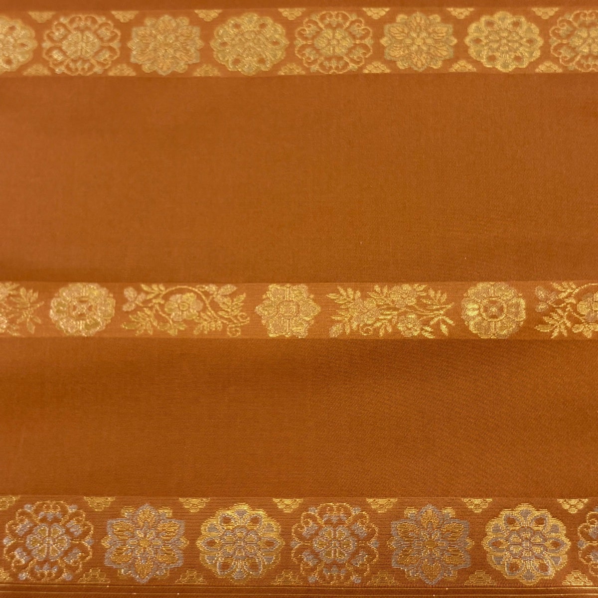 【美品】 袋帯 秀品 華文 花丸文 箔 ベージュ 六通 正絹